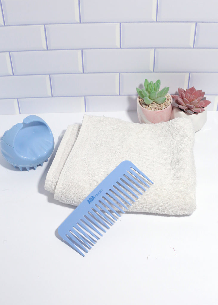 Transform your hair routine with this versatile comb designed for wet or dry hair. Smoothes + gently detangles – your go-to for showering, post-shampoo, + conditioning treatments.