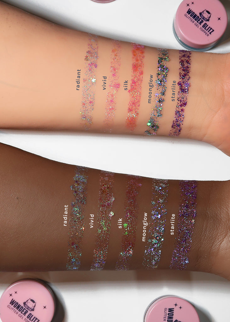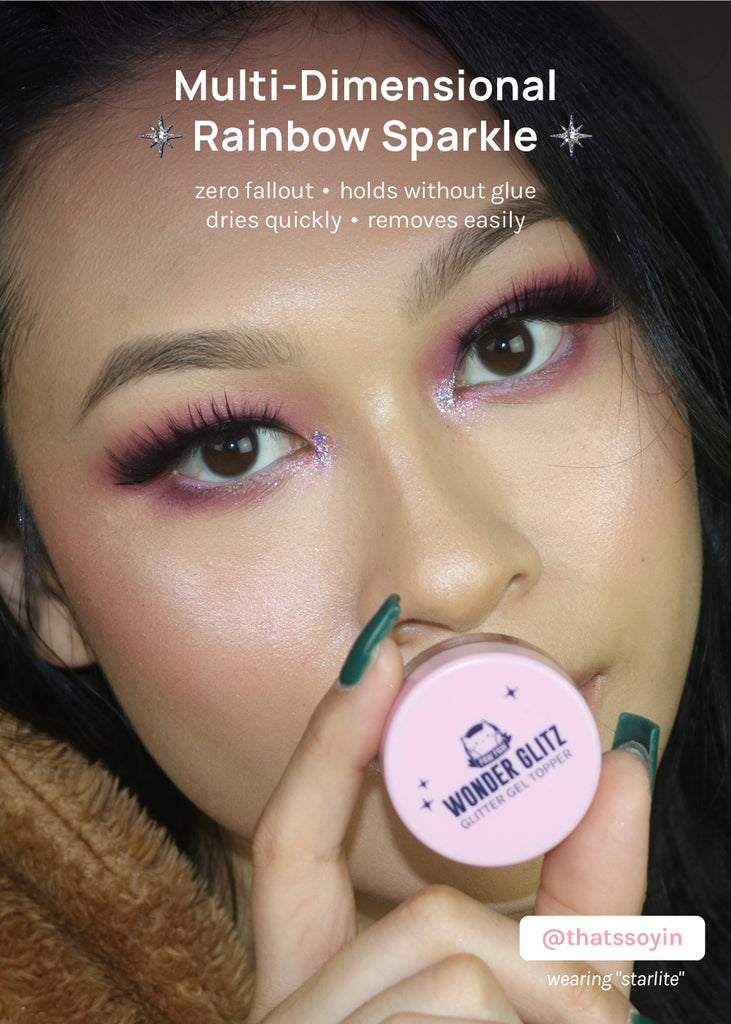 Ingredients: Aqua, Polyurethane-11, Polyethylene Terephthalate, Polybutylene Terephthalate, Acrylates Copolymer, Ethylene/VA Copolymer, Glycerin, PVP, Caprylic/Capric Triglyceride, Ammonium Acryloyldimethyltaurate/VP Copolymer, Trilaureth-4 Phosphate, Polyglyceryl-2 Sesquiisostearate, Phenoxyethanol, Fragrance, Ethylhexylglycerin [+/- May Contain: CI 77891 (Titanium Dioxide), CI 77000 (Aluminum Powder), CI 16035 (Red 40 Lake), CI 77510 (Ferric Ferrocyanide), CI 19140 (Yellow 5 Lake), CI 15850 (Red 7 Lake), CI 45410 (Red 28 Lake), CI 15850 (Red 6 Lake)]