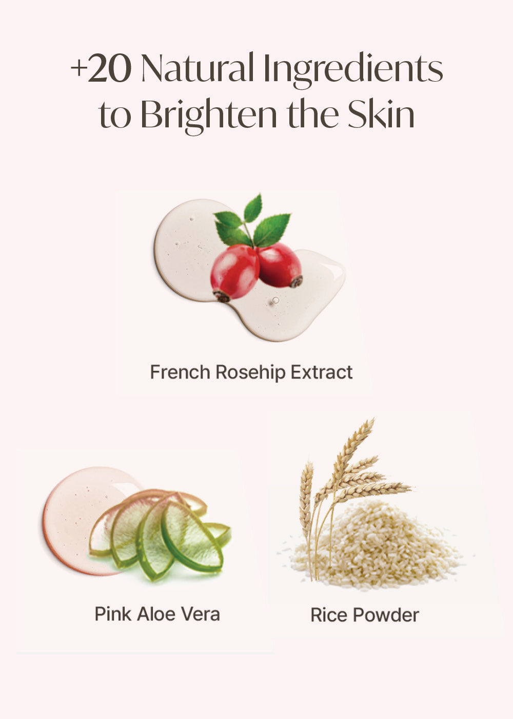 Rice Water & Powder: Helps exfoliate buildup and promote a smooth, luminous finish