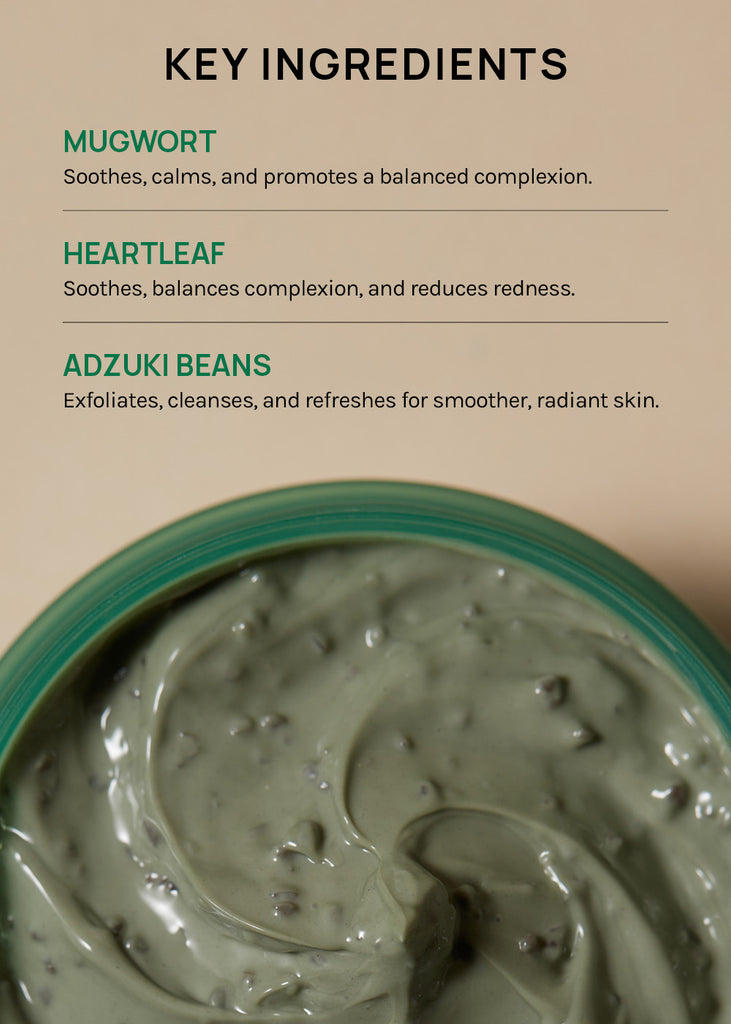 Our wash-off mask features Heartleaf to help control excess sebum and maintain moisture, visibly reducing redness and dryness for a more balanced, refreshed skin appearance.