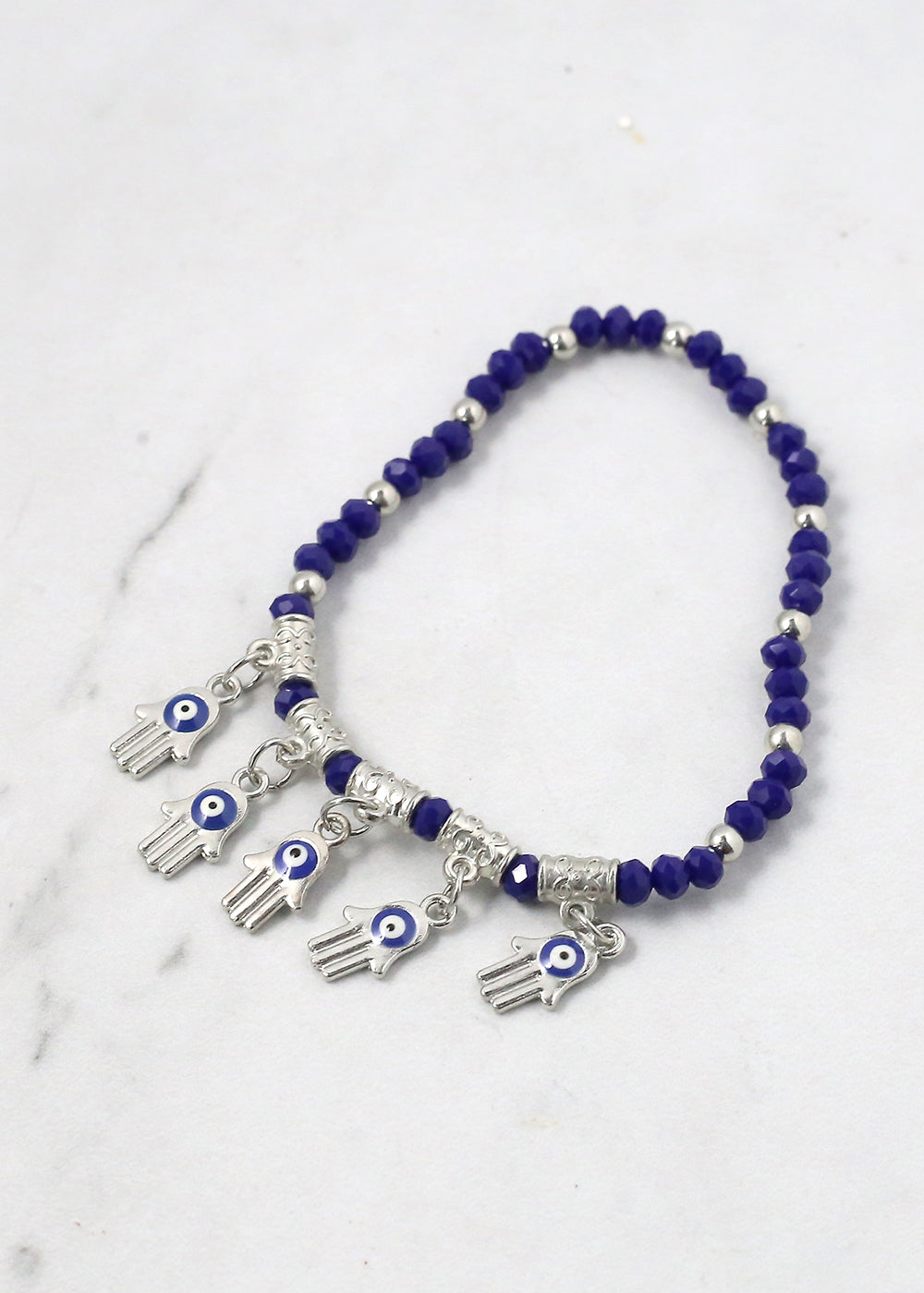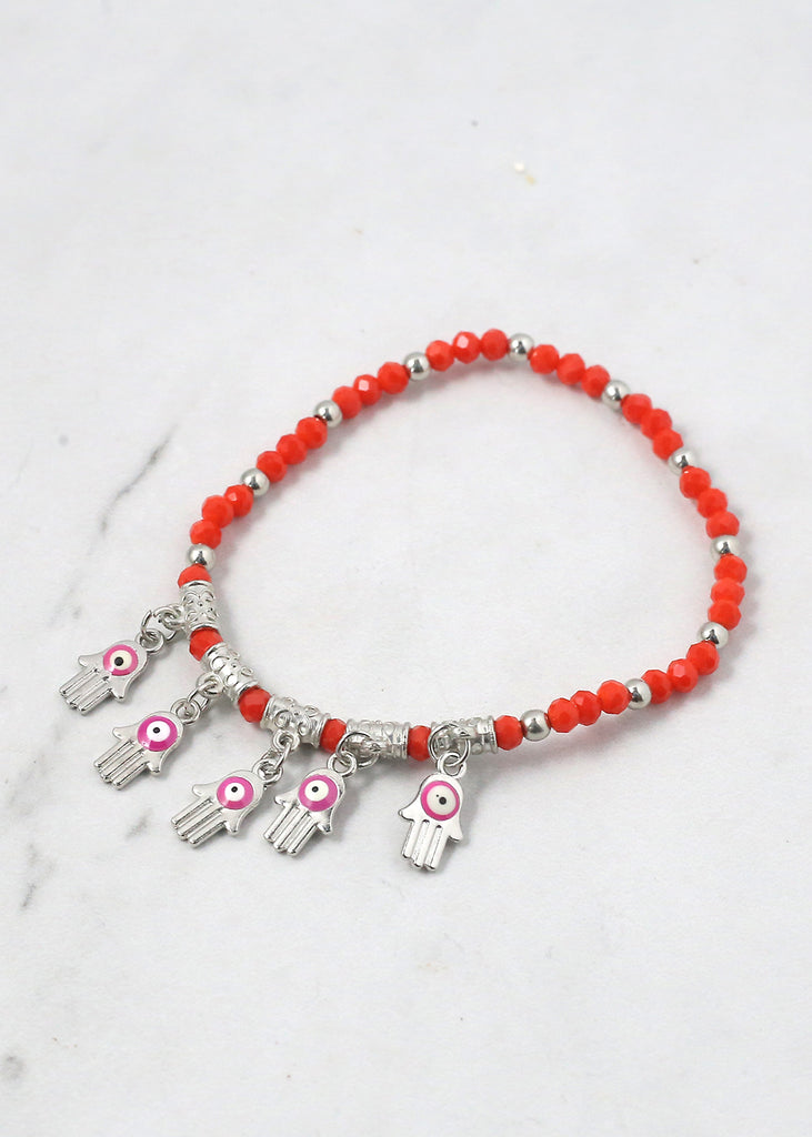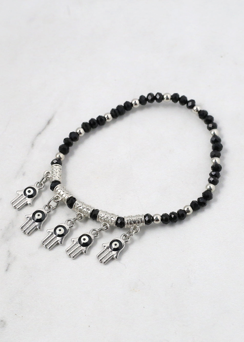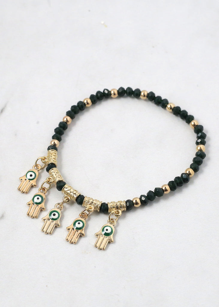 Beaded Hamsa Hand + Evil Eye Bracelet