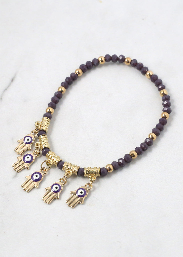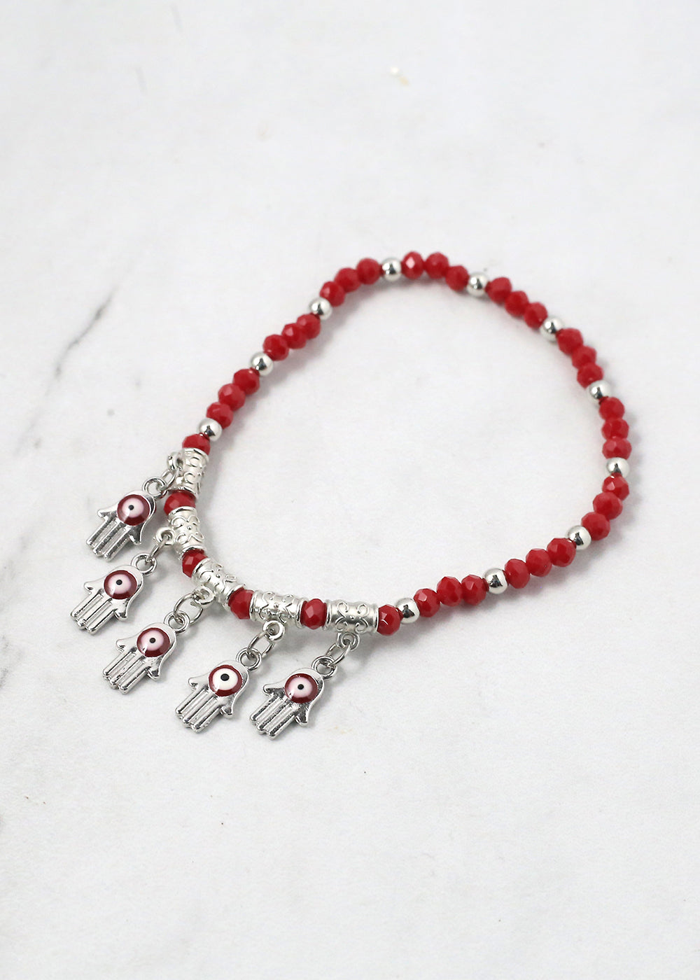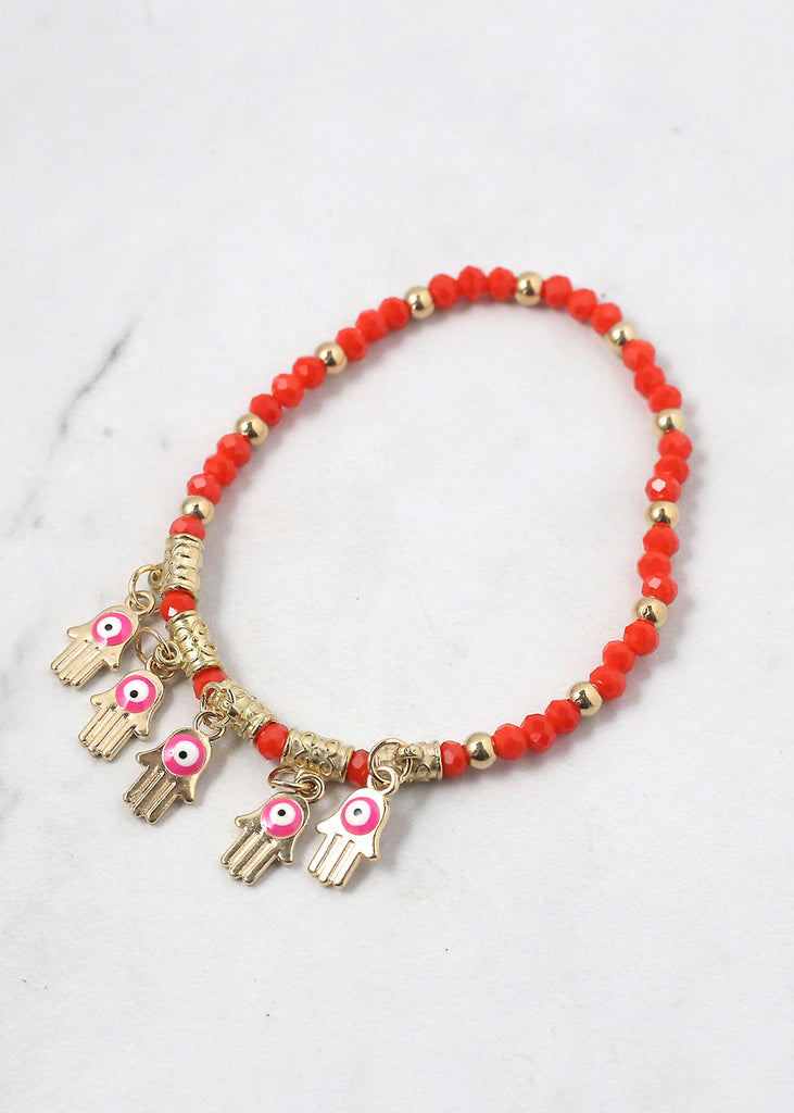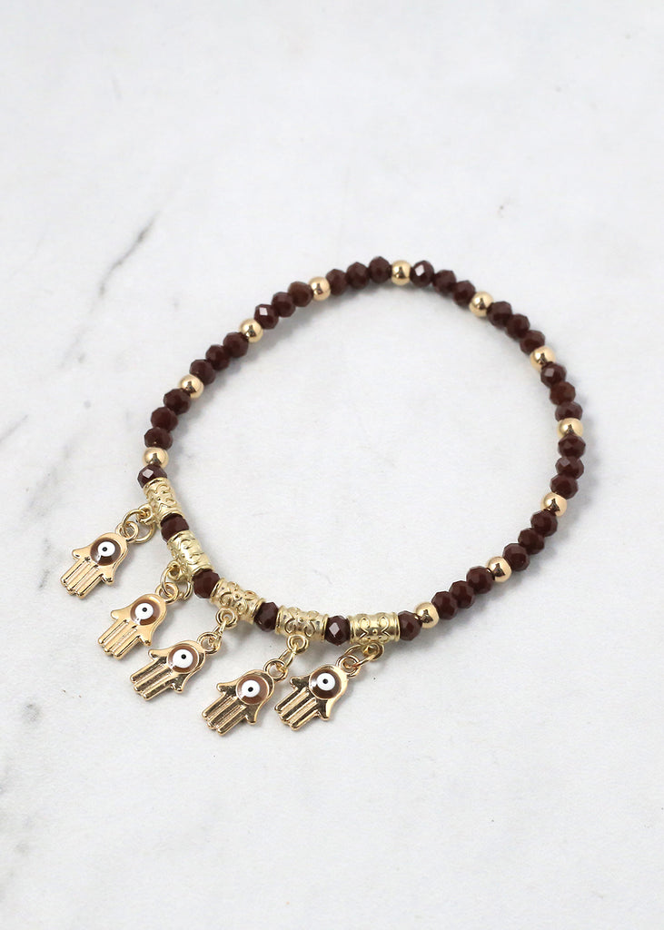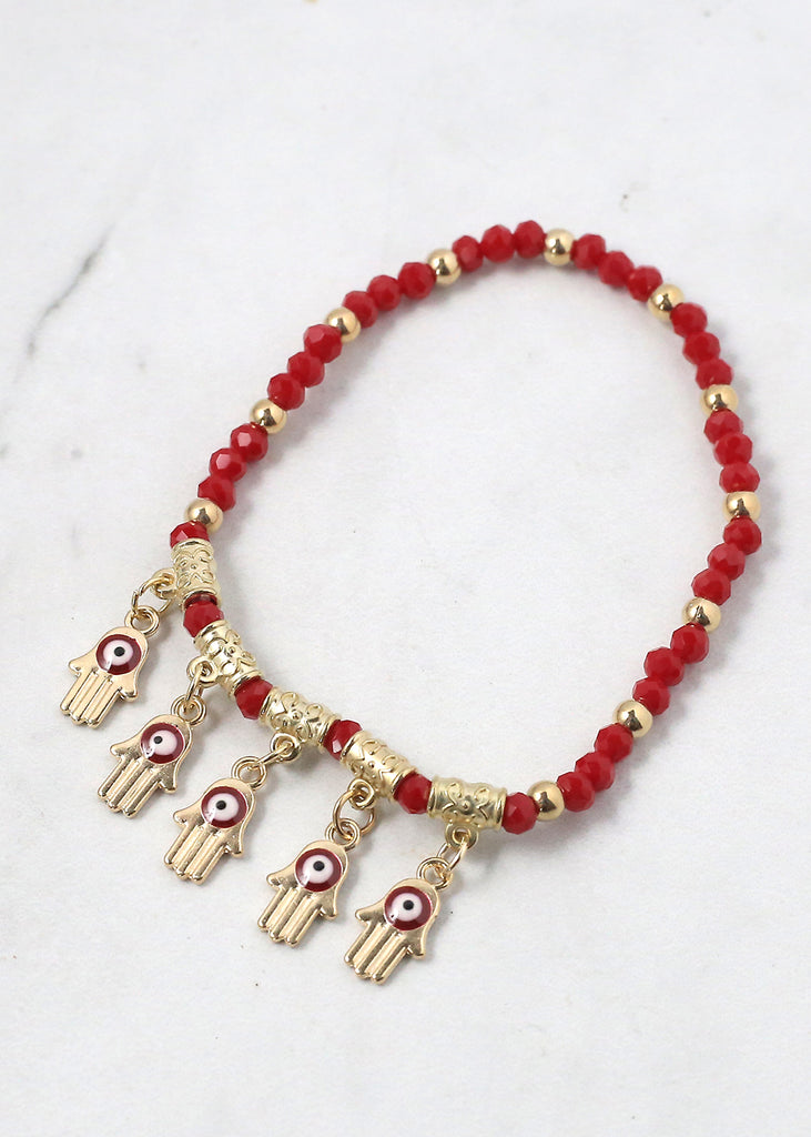 Beaded Hamsa Hand + Evil Eye Bracelet
