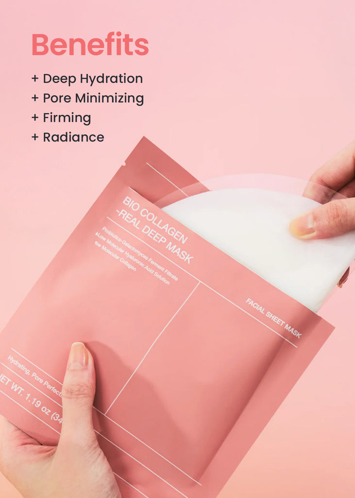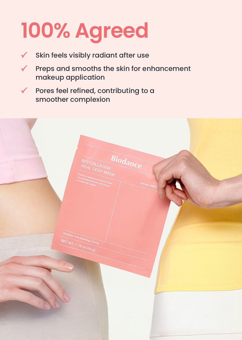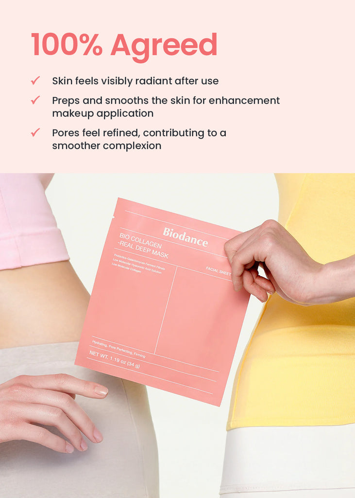 The oligo-hyaluronic acid found in the Biodance Bio-Collagen Real Deep Mask has a moisturizing effect that is superior to that of regular hyaluronic acid. It quickly hydrates the skin's surface and penetrates deeper layers of skin resulting in a healthy and moisturized complexion.