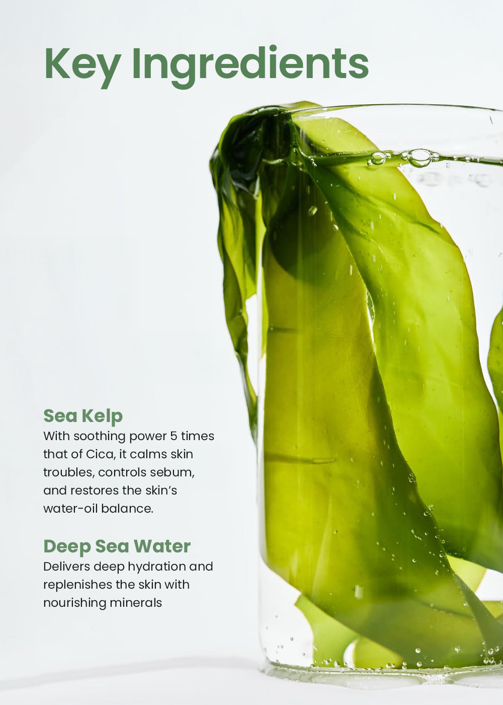 Contains sea kelp to soothe and refine the skin, it also helps restore the skin's oil-water balance. Especially beneficial for oily and acne-prone skin.