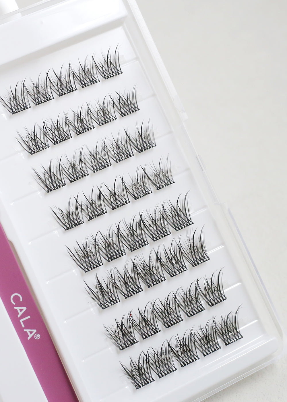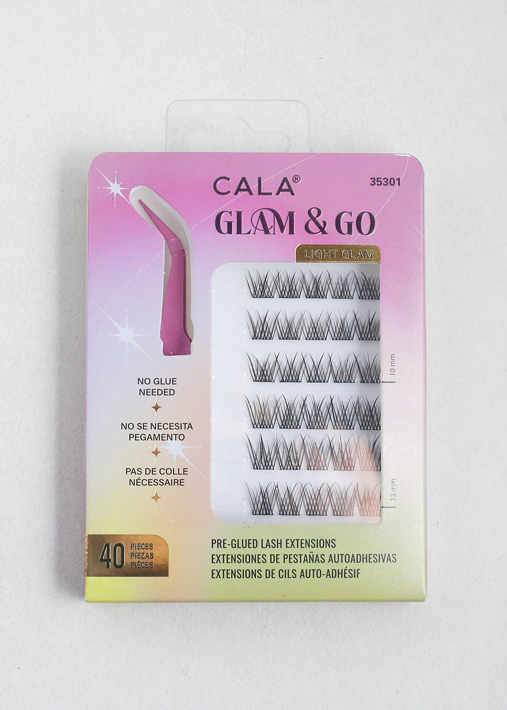 Get effortlessly glam in seconds with CALA Glam & Go Pre-Glued Lash Extensions. These mess-free, easy-to-apply lash clusters require no glue—just peel, apply, and go! Perfect for both beginners and lash pros, these pre-glued lash extensions instantly add volume, length, and a natural yet flirty glam look.