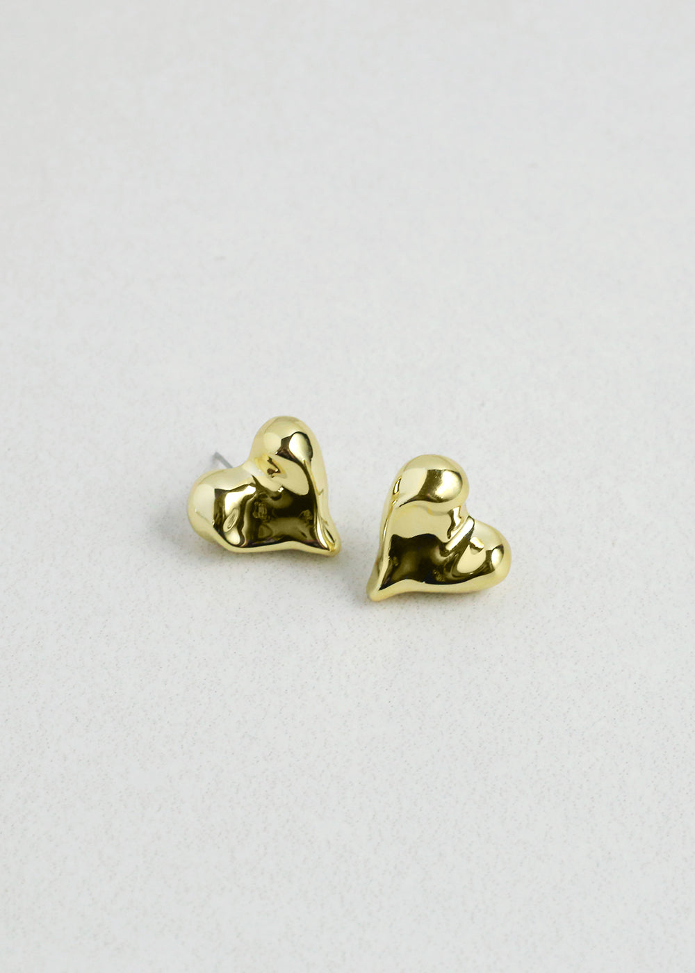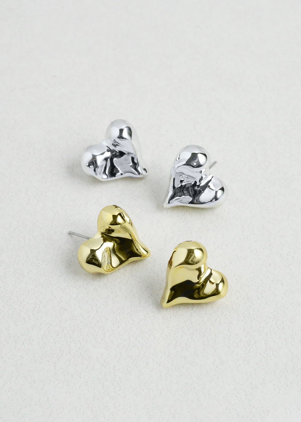 Make a statement with these stunning chunky heart stud earrings, designed to bring a touch of bold elegance to your accessory collection. Featuring a modern, sculpted heart design with a glossy metallic finish, these earrings are available in both gold and silver tones to match any style. Their unique, slightly asymmetrical shape adds character and charm, making them the perfect blend of playful and chic.