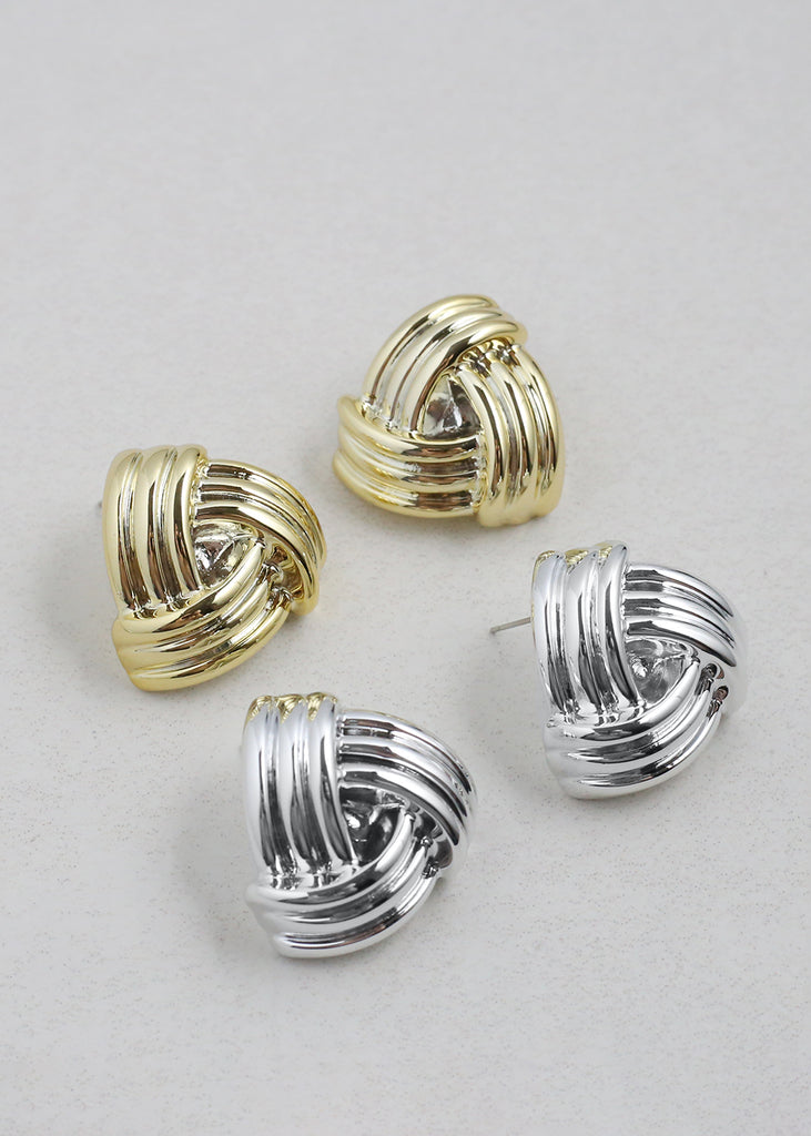 Upgrade your jewelry collection with these bold and timeless triangular knot earrings – the perfect statement piece for any outfit!
