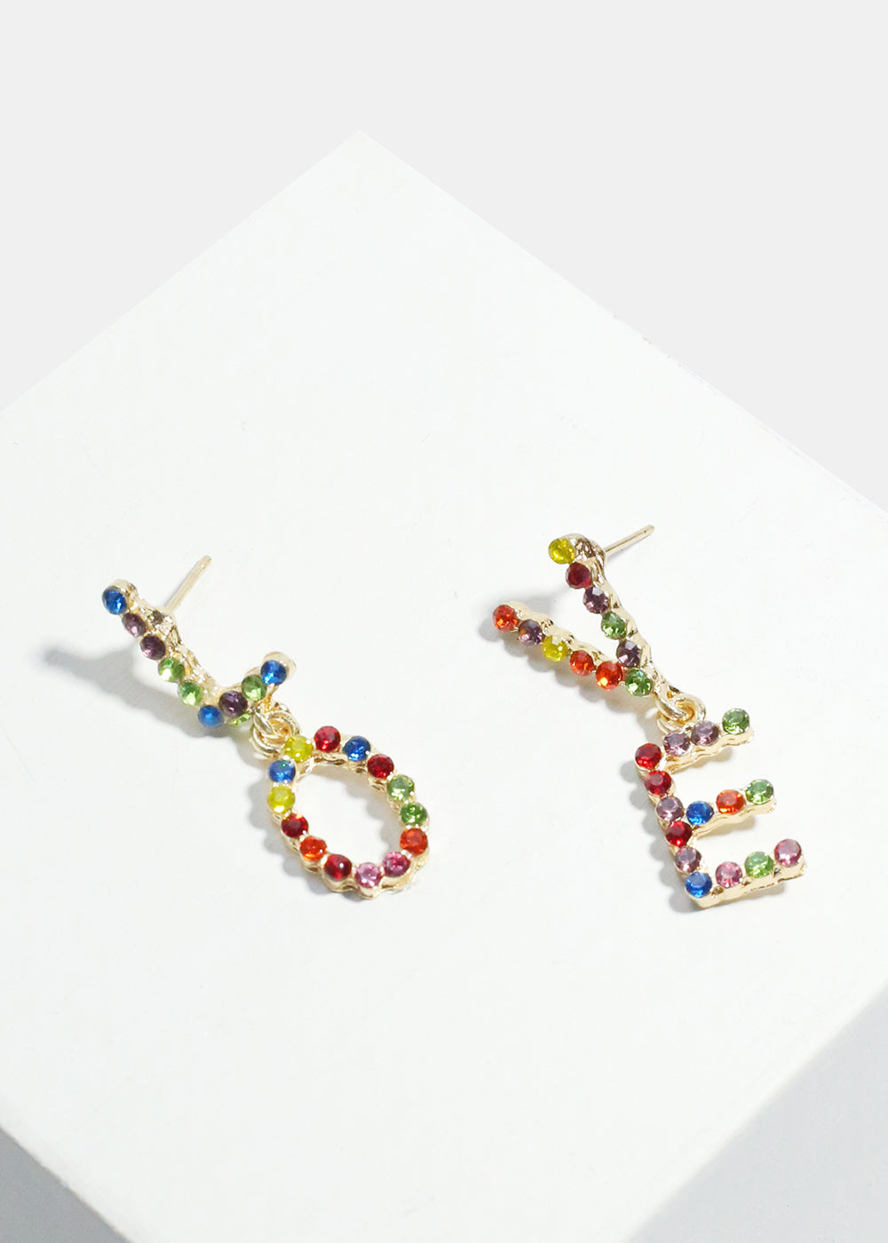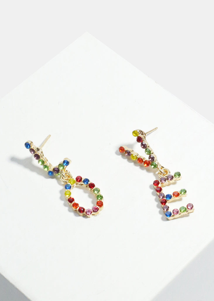 Add some color to your look with these colorful "LOVE" dangle earrings. Stylish earrings that you can style with your everyday look.
