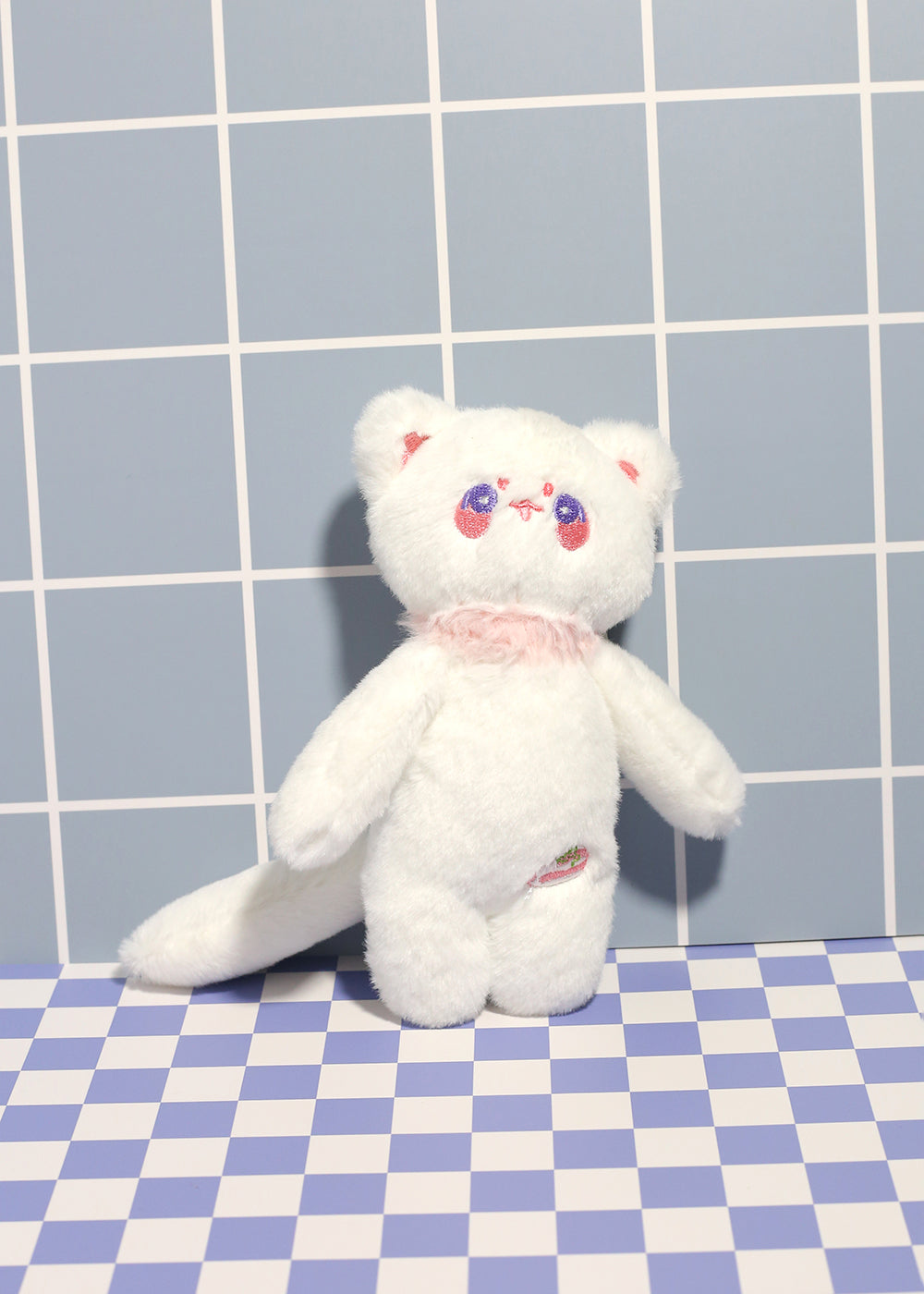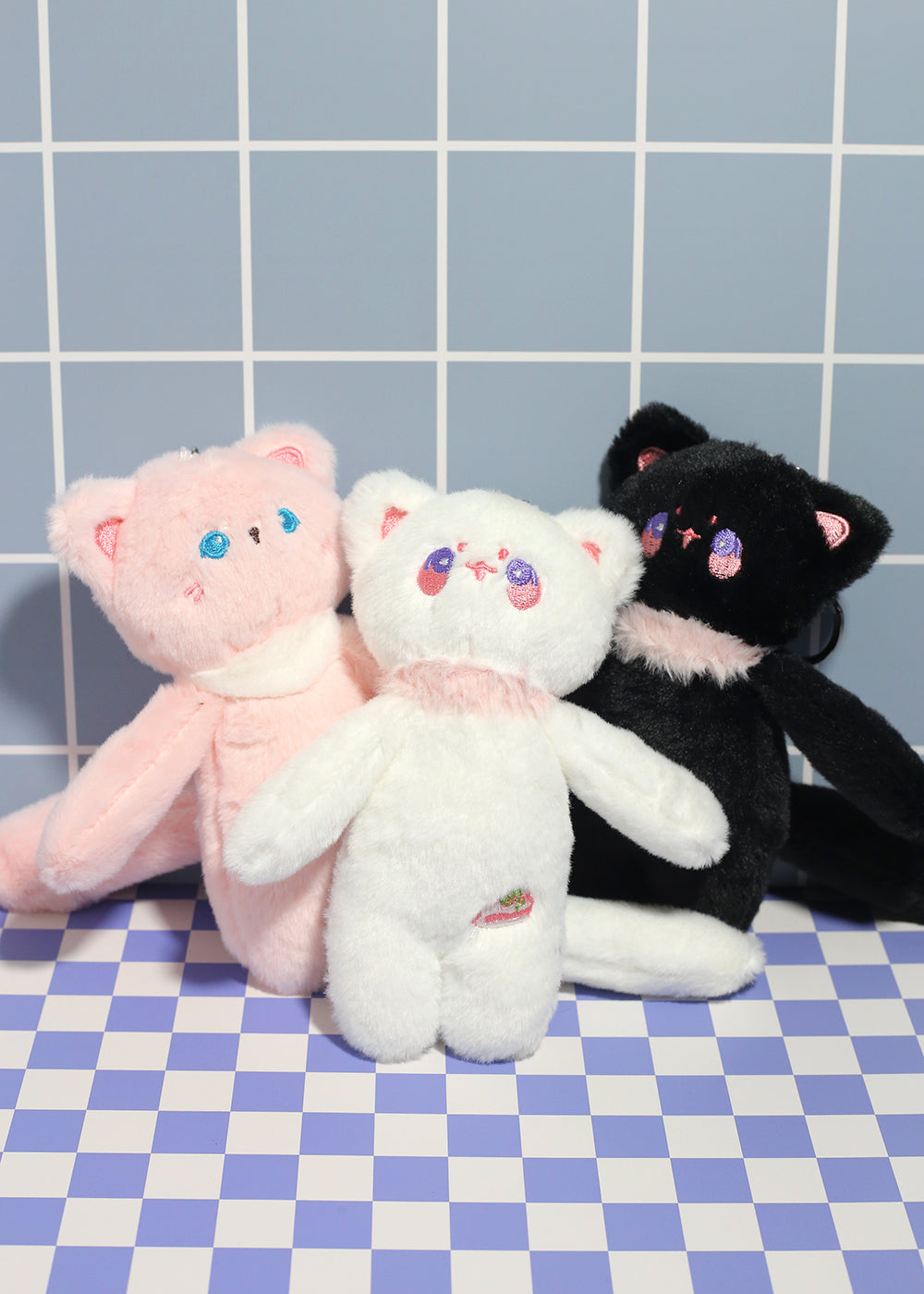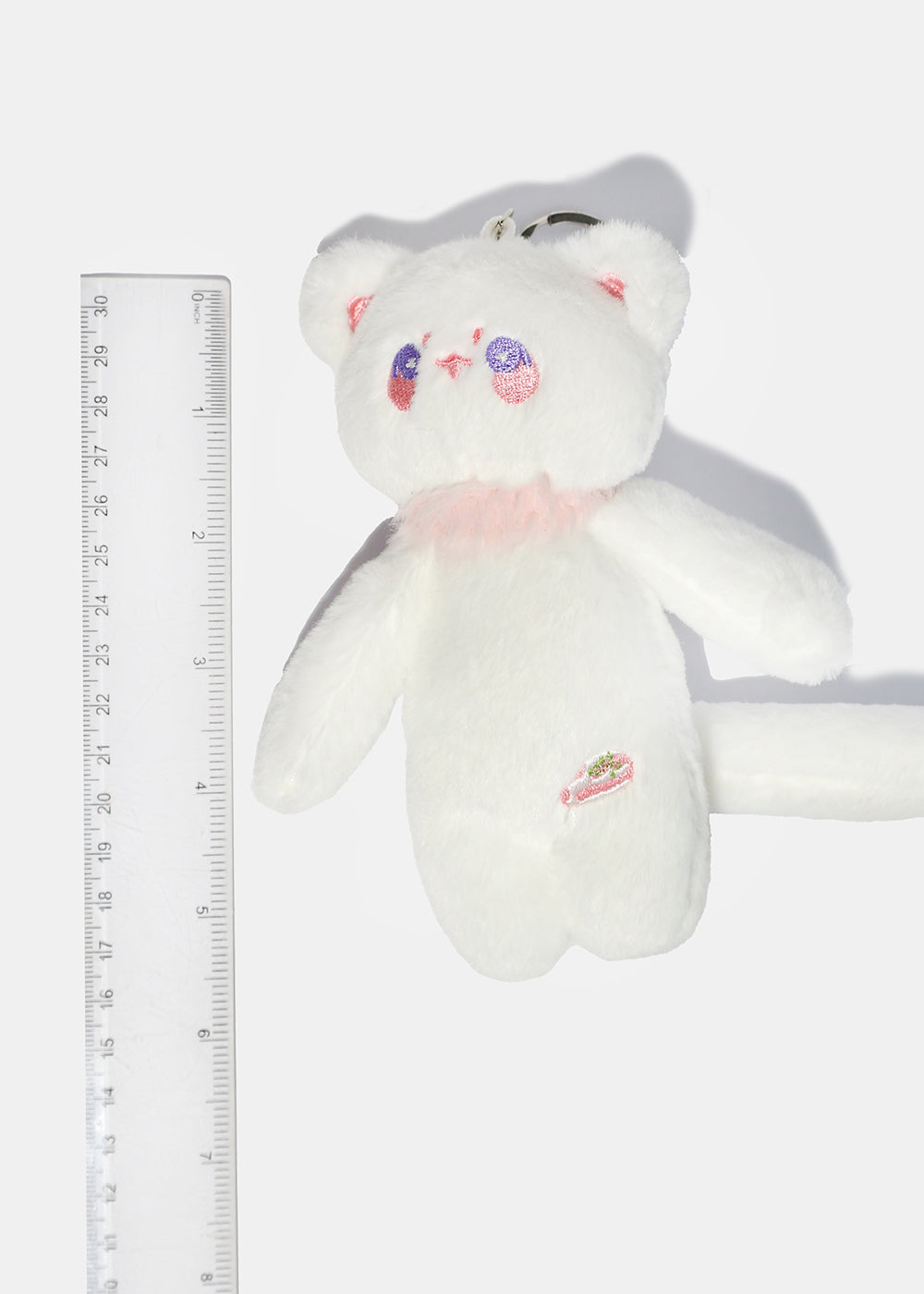 This soft and cuddly cat plush features embroidered details, sweet expressions, and a fluffy texture that makes it the perfect charm for keys, backpacks, purses, or totes.