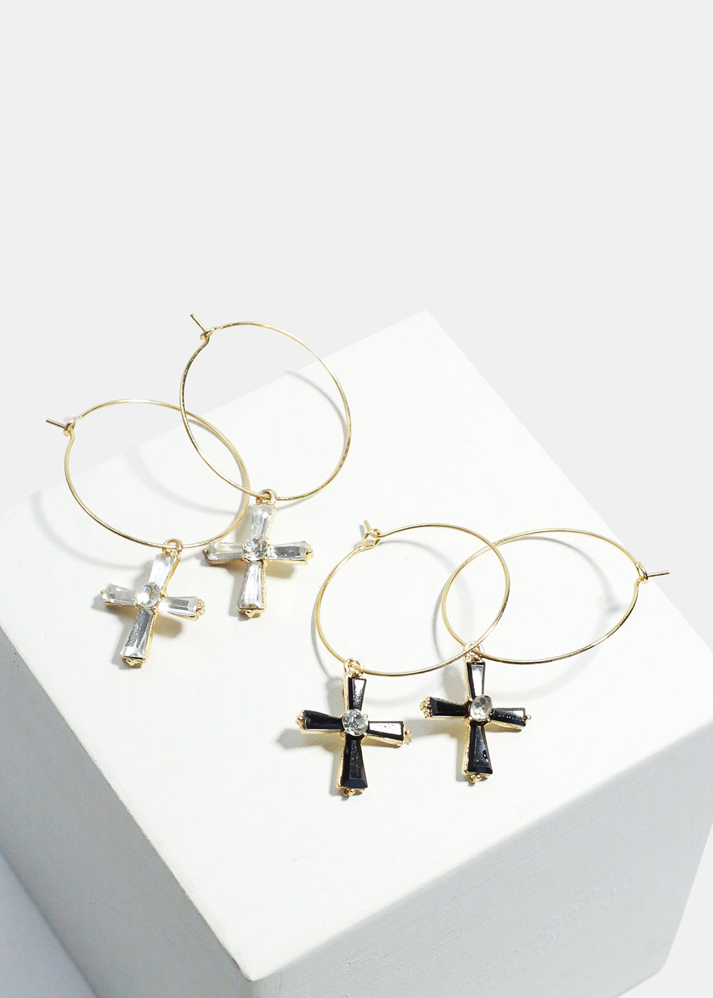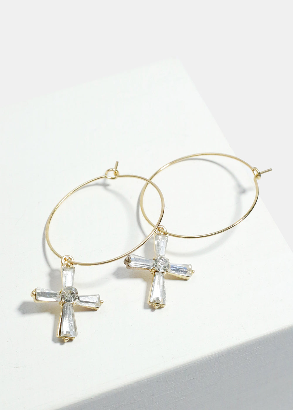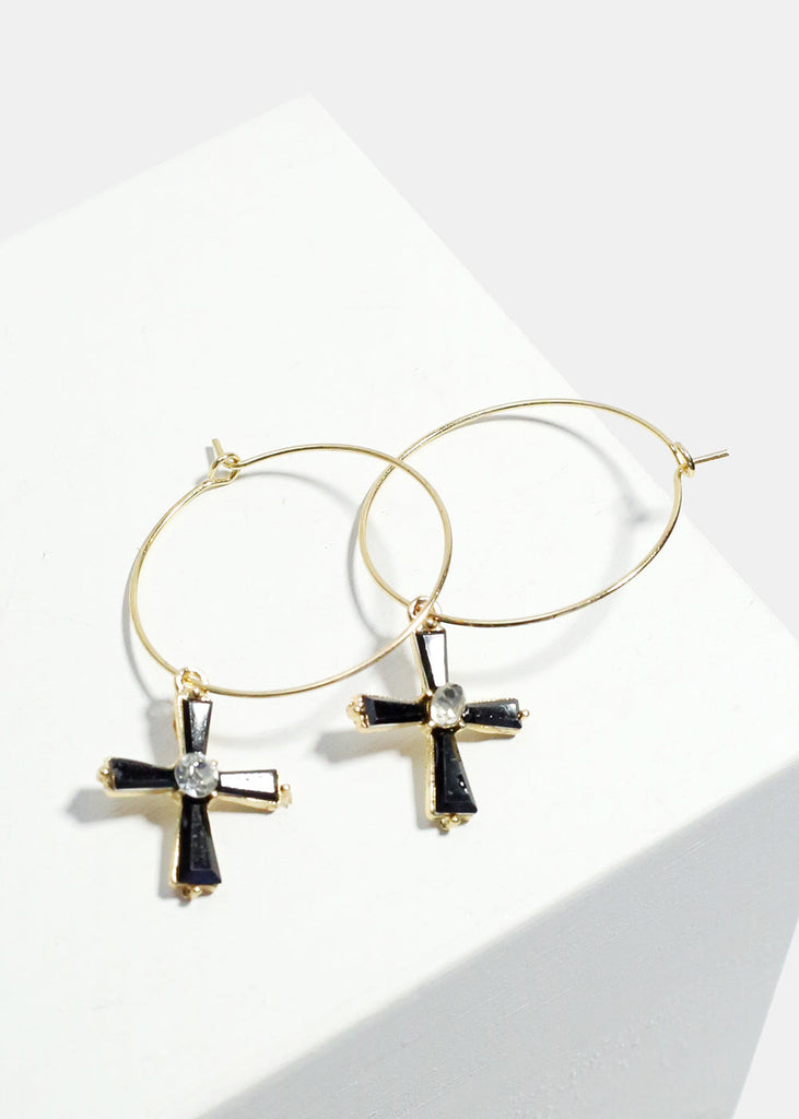 A beautiful pair of cross dangle hoop earrings that will compliment your everyday look. Pair these pretty cross earrings with any ensemble from business casual to everyday wear.