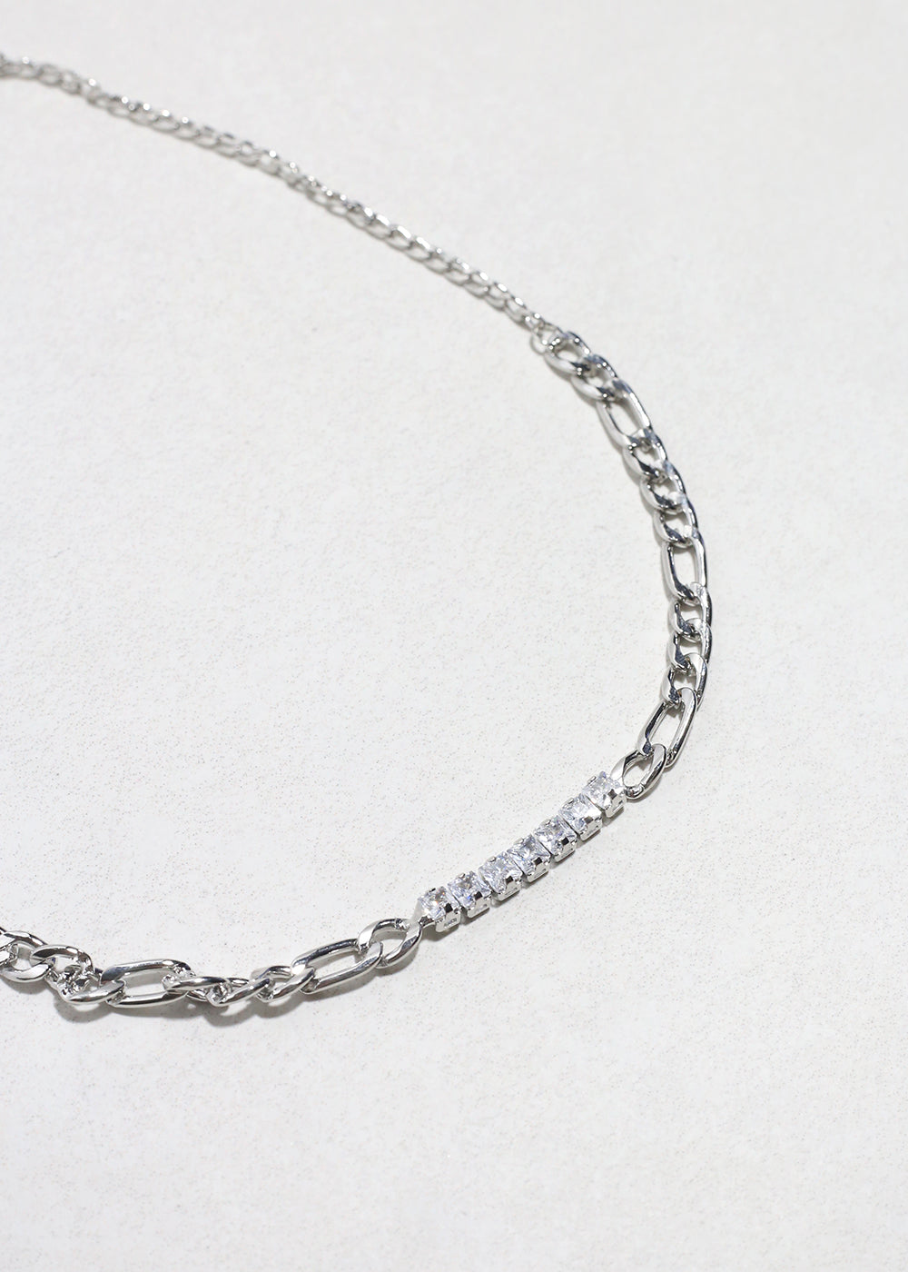 Silver Linked Chain Necklace with Crystal Bar Accent