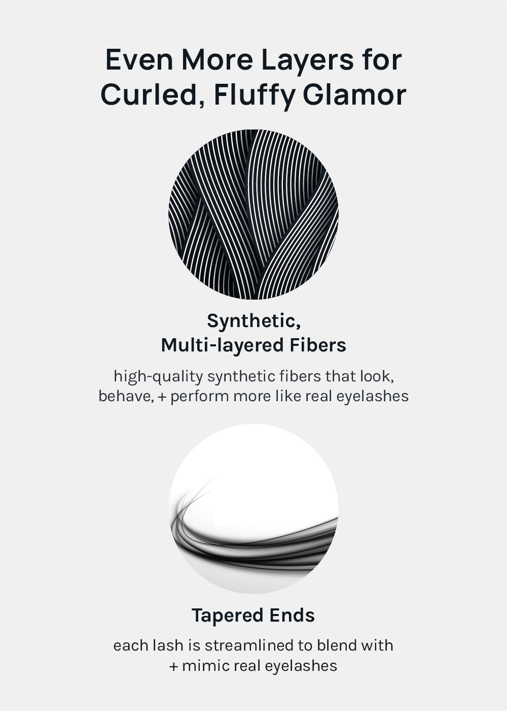 Inspired by lash extensions, lightweight, + SUPER CURLED, AOA D-LUX Curl Faux Mink Premium Lashes are stacked with multi-layered 100% Vegan fiber to add wispy length, lift, + volume to all eye shapes. Features a sturdy lash band to last multiple wears.