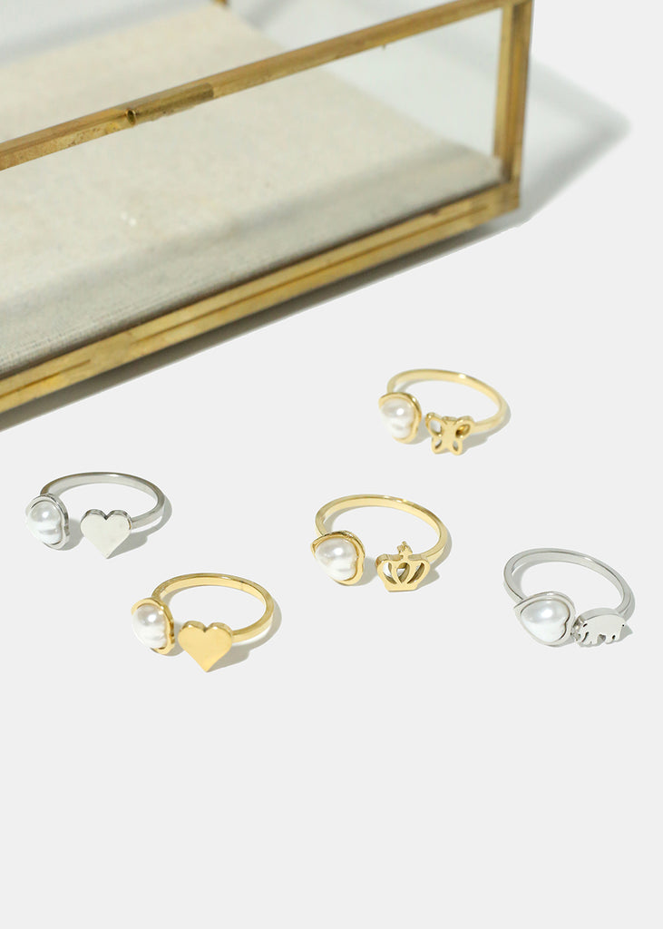 Dainty ring with a pearl and cute design. Design will be randomly chosen for you: heart, butterfly, crown , elephant.
