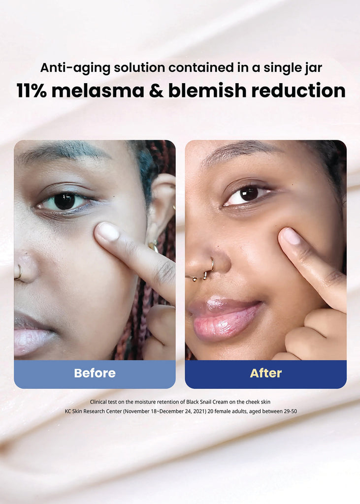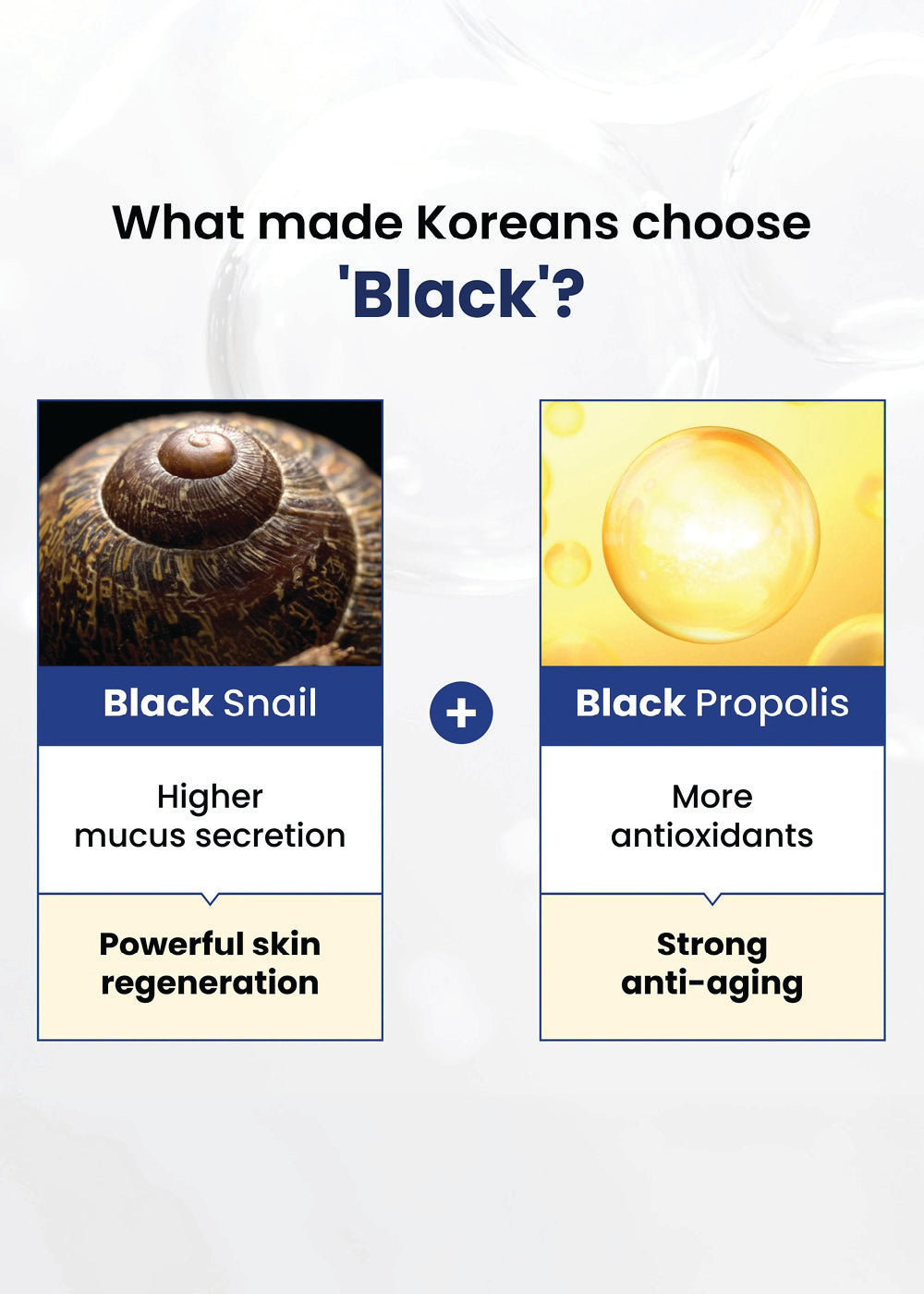 Premium 20% black snail, a unique ingredient. Clinically demonstrated skin firming, lifting and density improvement effect.