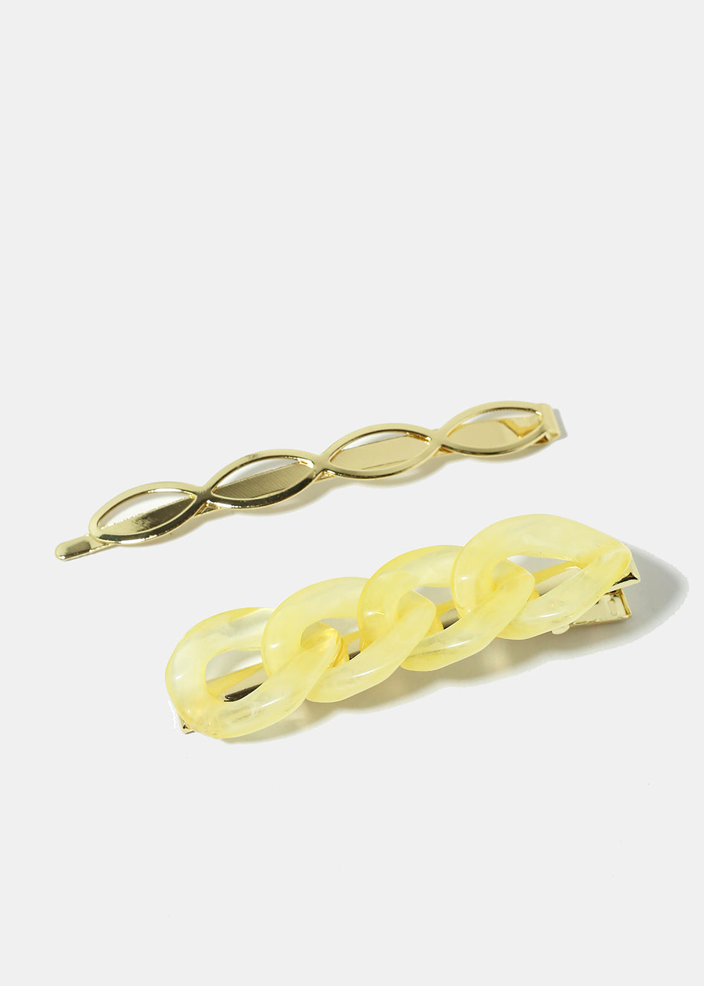 Enhance your hair-do with this 2-piece colorful hairpin set. Style this set with your buns, braids, and ponytails. Durable and trendy accessories that you can add to your hair for a pop of color.