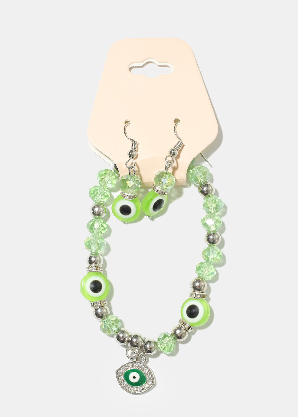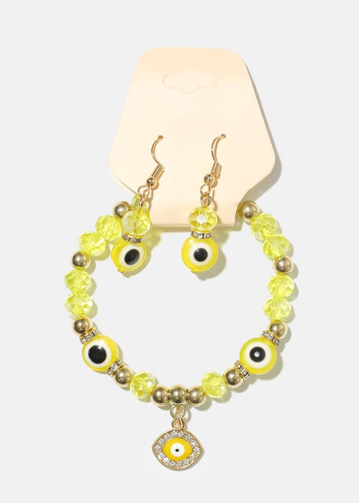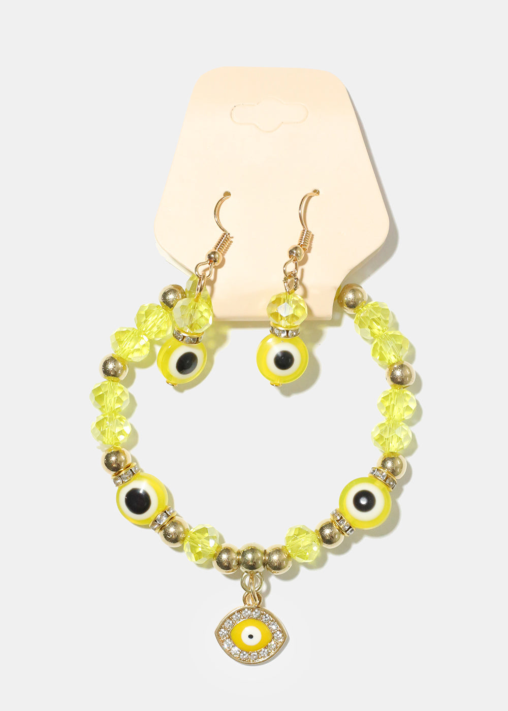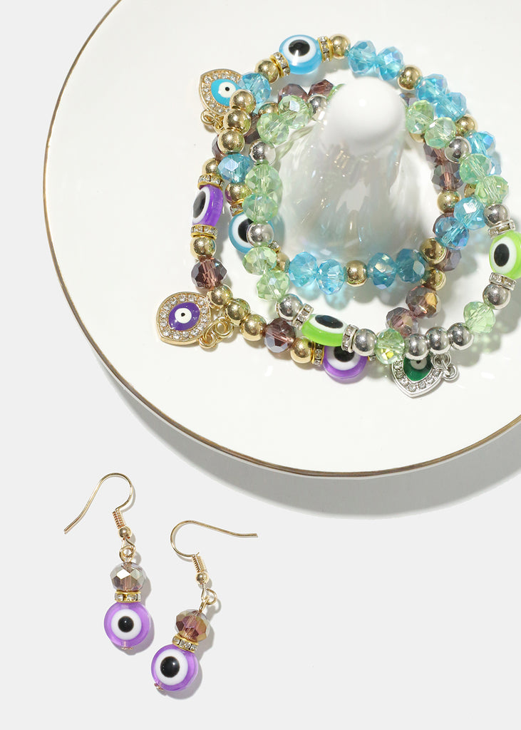 - Stretchy elastic bracelet band with matching hypoallergenic earrings