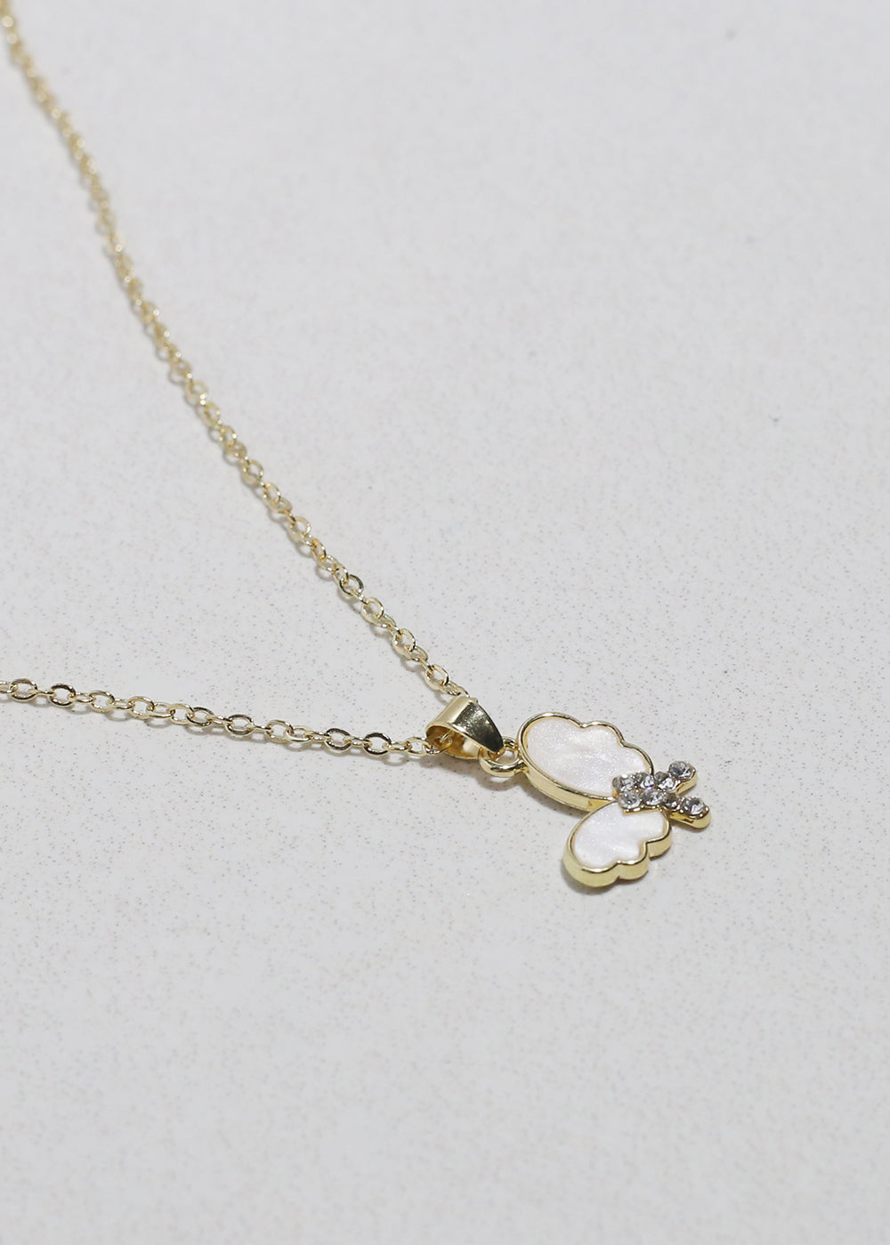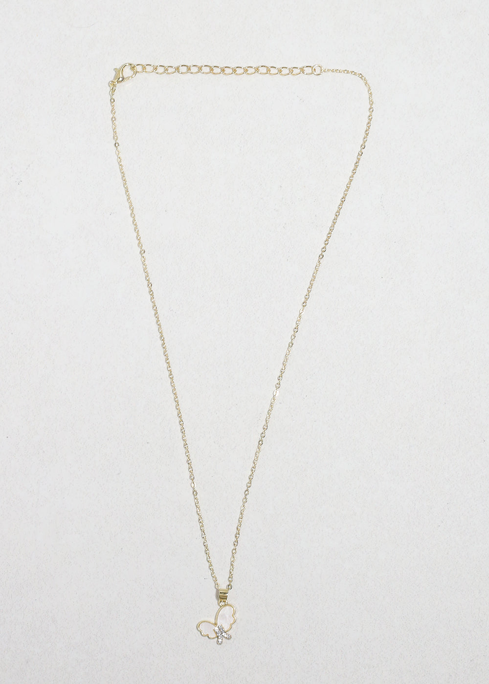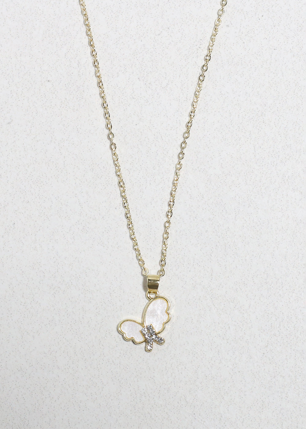 Add a touch of elegance and whimsy to your everyday look with our Flutter Gleam Butterfly Pendant Necklace. Designed with a delicate gold-tone chain and a stunning butterfly charm, this necklace brings the perfect mix of sparkle and softness to any outfit. The butterfly pendant features shimmering accents and a pearlescent finish that catches the light beautifully, making it a standout accessory for any occasion.