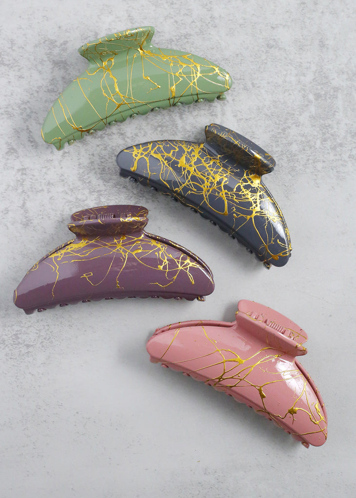 Elevate your hairstyling game with our Gold Marble Jaw Clips, a perfect blend of sophistication and function. Designed for all hair types, these stylish claw clips feature a marbled look with delicate gold accents.