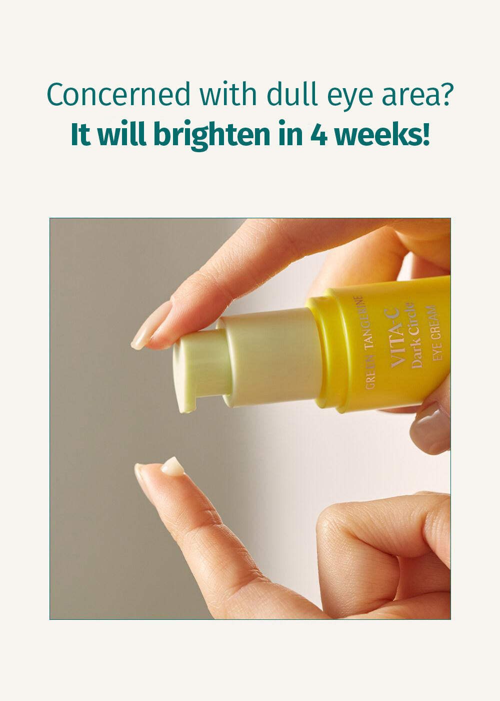 In a clinical study, 85.7% of subjects saw reduced dark circles starting at 4 weeks. Our combination of vitamin C, vitamin P, and green tangerine extract works together to clear up and brighten the skin around your eyes for noticeable results.