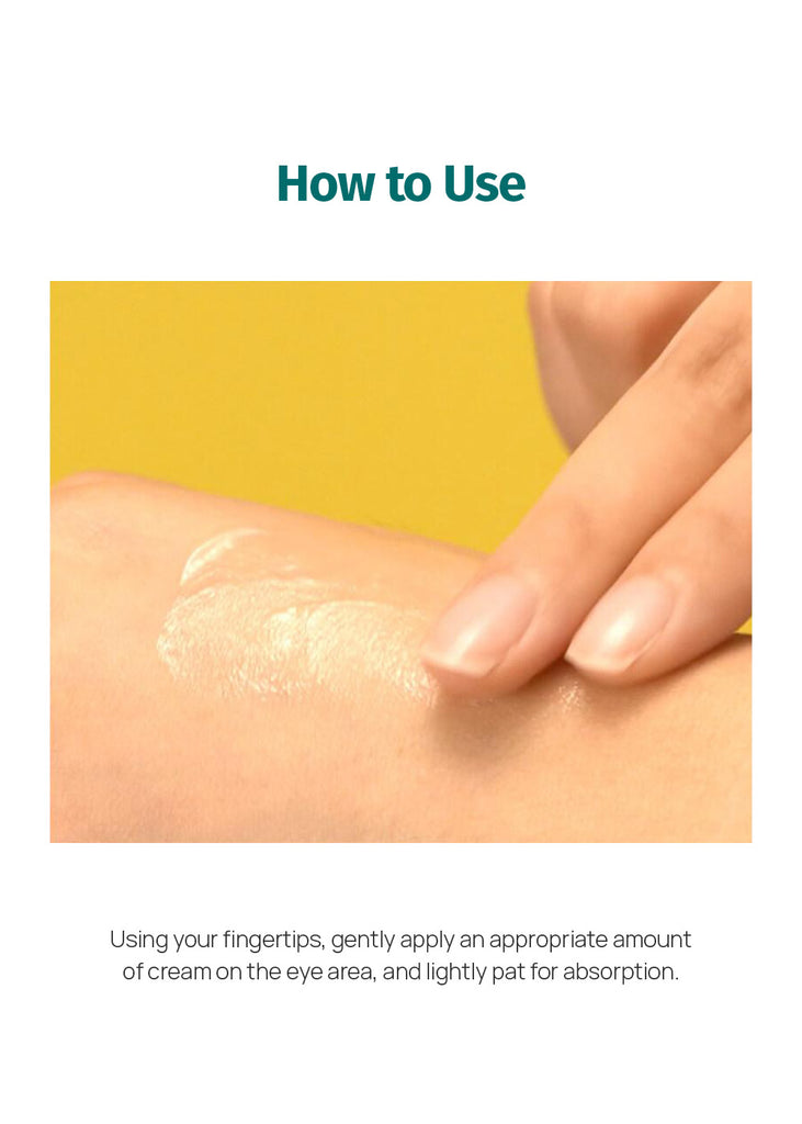 Take an appropriate amount on the tip of your hand and gently apply it onto the troubled eye area, then pat it lightly for absorption.