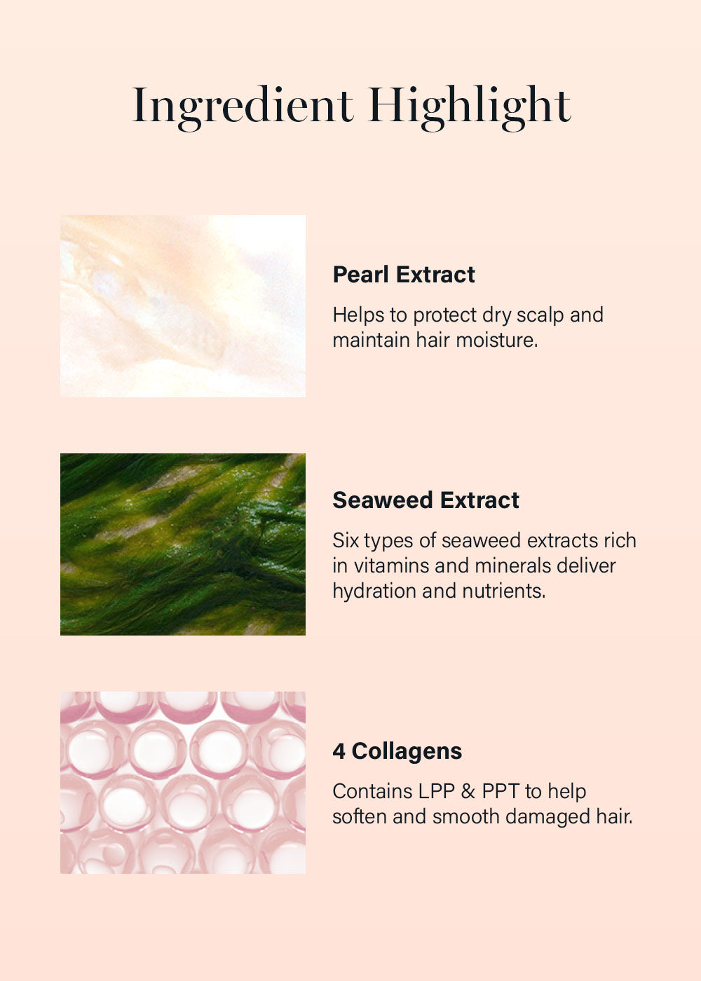 Experience instant hydration and repair with this no-rinse treatment, expertly formulated to nourish all hair types. Infused with Marine Collagen, Himalayan Pink Salt, and a potent Seaweed Complex, this lightweight yet powerful formula deeply penetrates to strengthen damaged strands from within. It smooths frizz, restores elasticity, and enhances natural shine without weighing hair down.