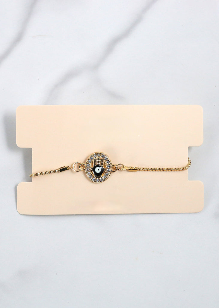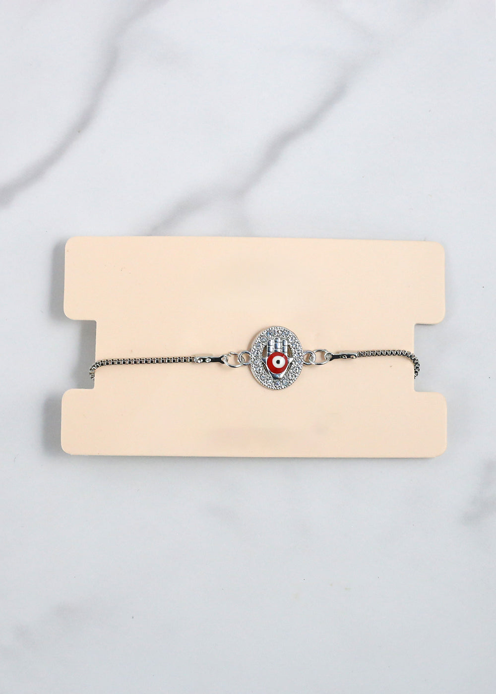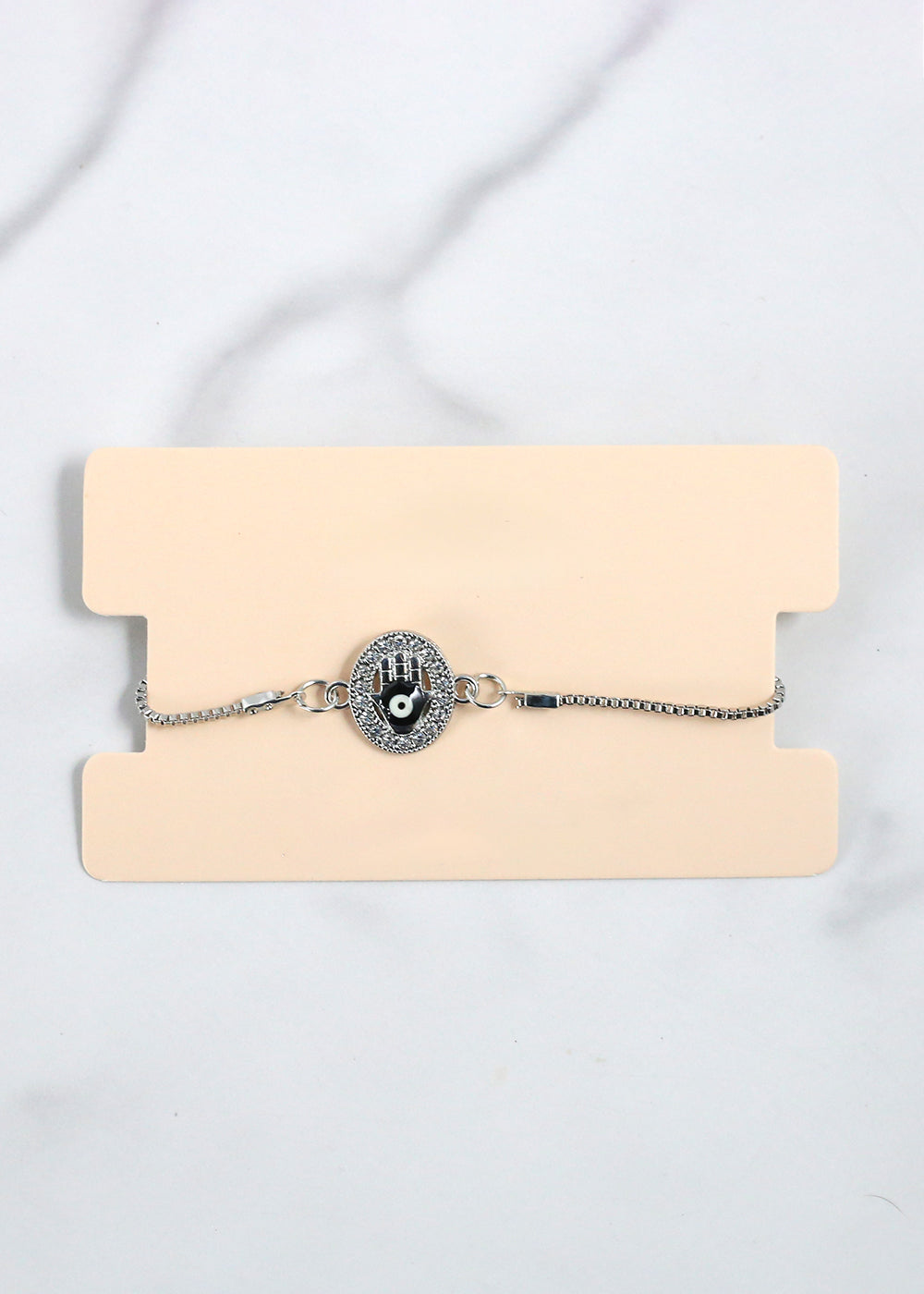 The adjustable sliding clasp ensures a comfortable and secure fit for any wrist size, making it a versatile accessory for everyday wear or special occasions. Whether you're looking to enhance your own jewelry collection or searching for a meaningful gift, this Hamsa Hand bracelet is the perfect choice.