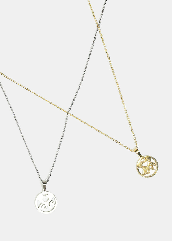 A heart and "LOVE" in circle necklace with earrings set in gold and silver! Pretty set of accessories that will add a girly touch to your look!