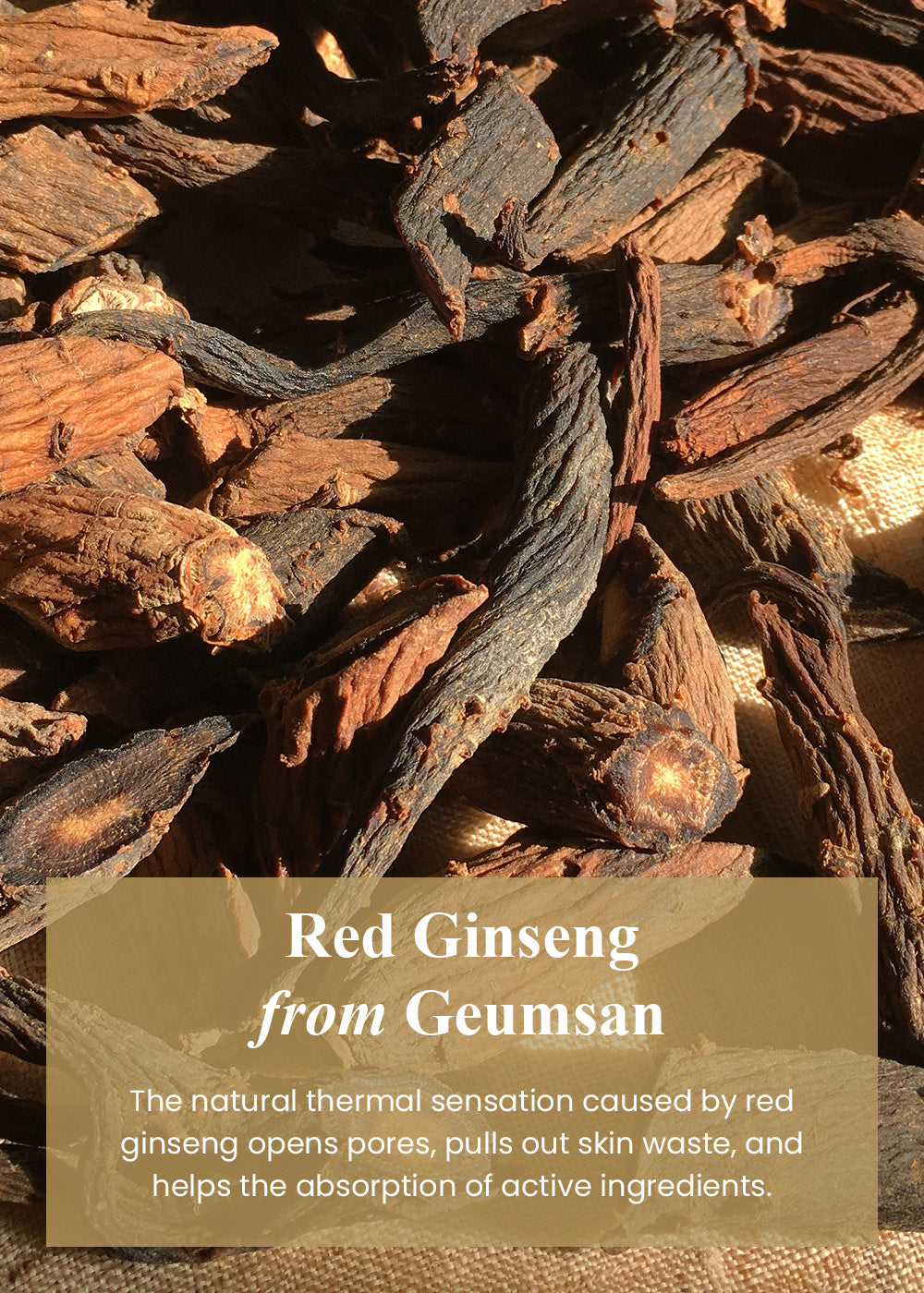 Contains 7.98% concentrated extract of 6-year Red Ginseng grown from Geumsan County, Korea, enhancing blood circulation to rejuvenate your skin and restore skin elasticity and firmness.