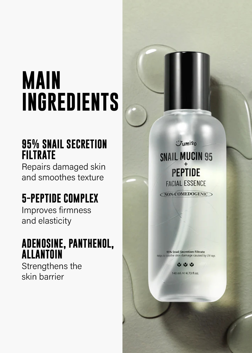 SUPERCOMBO OF TWO POWERHOUSE INGREDIENTS - 95% Snail Mucin moisturizes refreshingly. 5-Peptides boost anti-aging for firmer skin.
