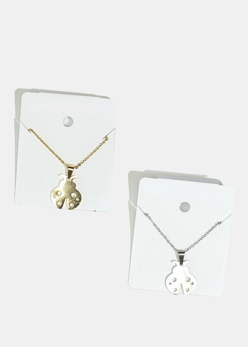 A stylish ladybug charm necklace in gold and silver color. Style this pretty necklace with your favorite outfit.