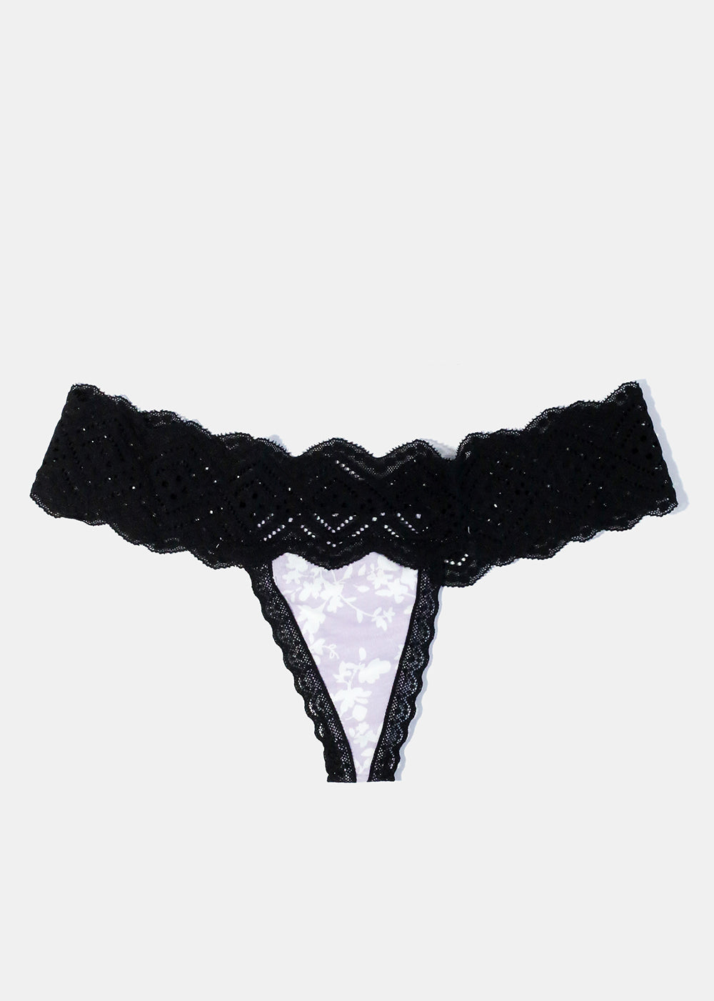 Lilac Black Lace Trim Thong - is backordered and will ship as soon as it is back in stock.