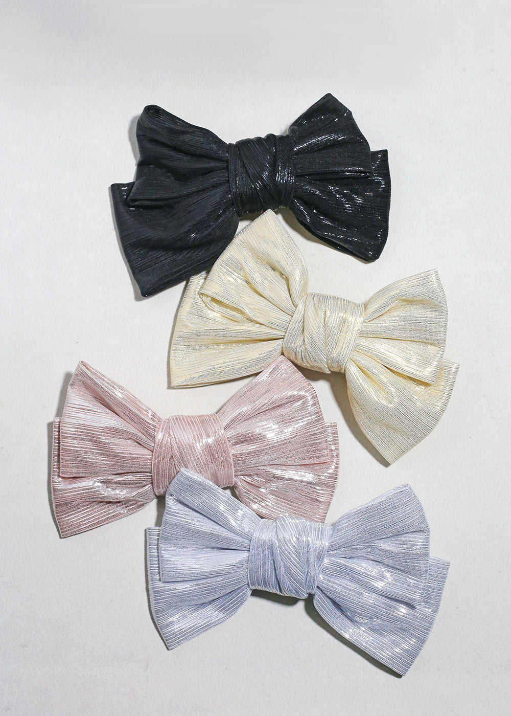 Add a soft shimmer to your everyday look with our Lumière Sheen Bow Hair Clip. Designed with a delicate pleated texture and subtle glossy finish, these bows catch the light beautifully—giving your hairstyle an effortlessly polished and feminine touch.
