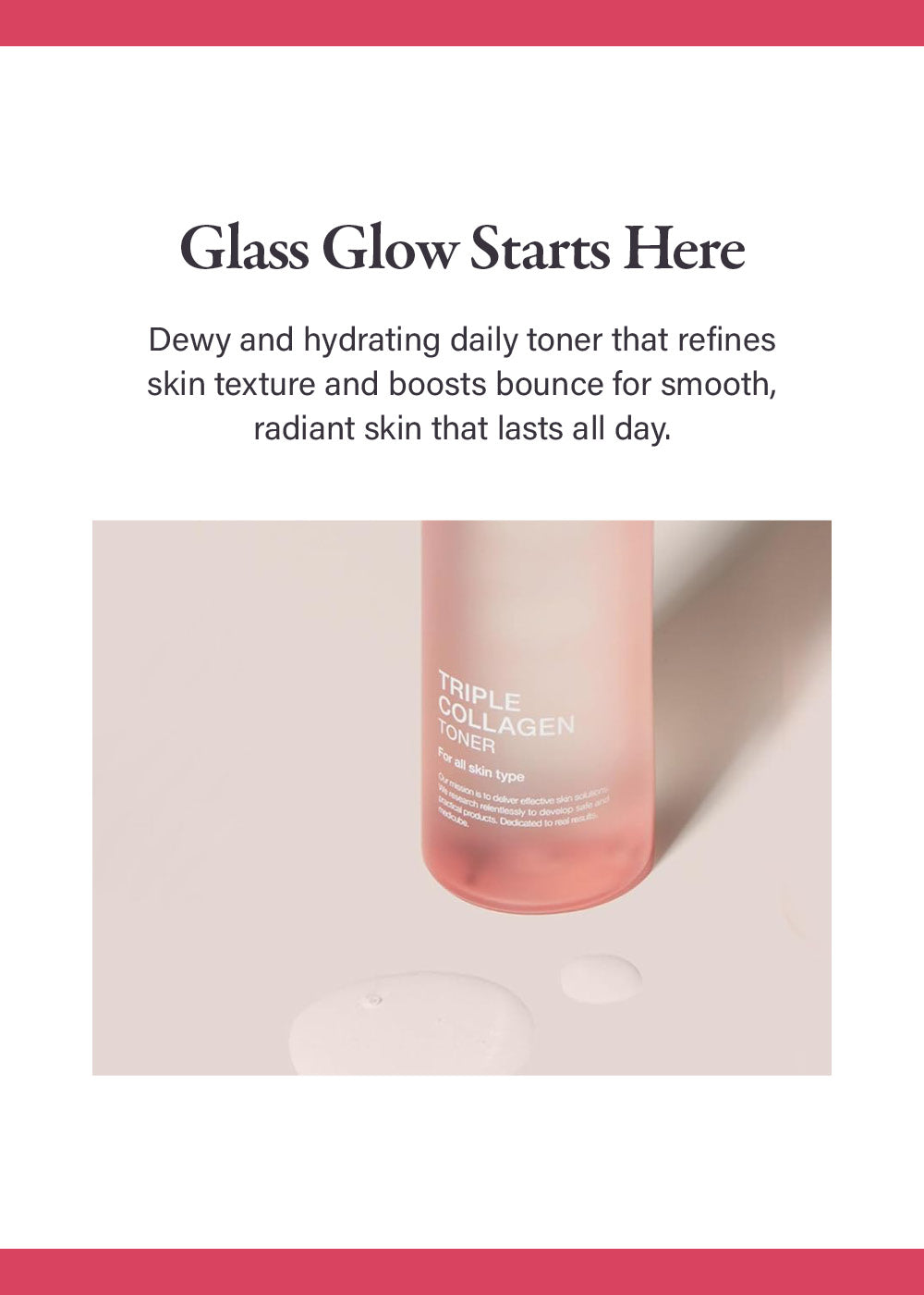 - A toner enriched with triple collagen to offers essential nutrients on skin to improve suppleness and glow on skin.
