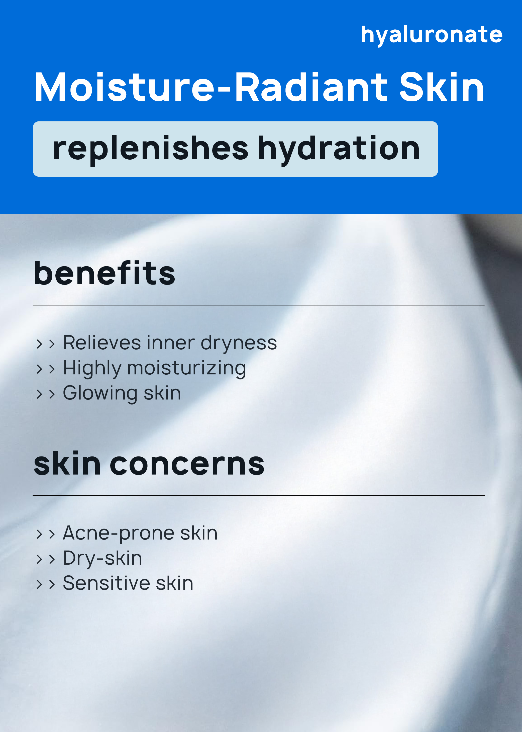 Hydrolyzed Hyaluronic Acid, Hyaluronic Acid, Sodium Hyaluronate Crosspolymer, Hydrolyzed Sodium Hyaluronate, Potassium Hyaluronate