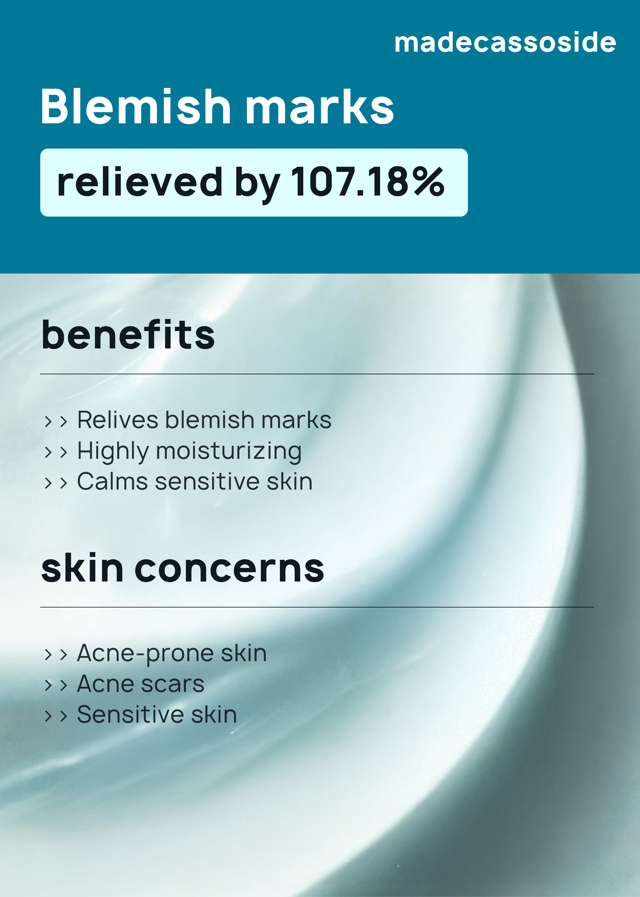 Water, Glycerin, Dipropylene Glycol, Butylene Glycol, Niacinamide, Triethylhexanoin, 1,2-Hexanediol, Arginine, Glyceryl Stearate, Hydroxyacetophenone, Polyglyceryl-3 Methylglucose Distearate, Acrylates/ C10-30 Alkyl Acrylate Crosspolymer, Carbomer, Xanthan Gum, Polyglyceryl-10 Laurate, Ethylhexylglycerin, Palmitic Acid, Polyglyceryl-4 Laurate, Stearic Acid, Sodium Acrylate/Sodium Acryloyldimethyl Taurate Copolymer, Disodium EDTA, Polyisobutene, Juniperus Virginiana Oil, Pantolactone, Centella Asiatica Leaf Extract, Centella Asiatica Extract, Centella Asiatica Root Extract, Madecassoside, Pyrus Communis (Pear) Fruit Extract, Simmondsia Chinensis (Jojoba) Seed Oil, Caprylyl/Capryl Glucoside, Sorbitan Oleate, Pogostemon Cablin Oil, Rosa Dama-scena Flower Water, Iris Florentina Root Extract, Cucumis Melo (Melon) Fruit Extract, Artemisia Vulgaris Oil, Cyperus Rotundus Root Extract, Hedera Helix (ivy) Leaf/Stem Extract, Rosmarinus Officinalis (Rosemary) Leaf Oil, Perilla Frutescens Leaf Extract, Taraxacum Officinale (Dandelion) Rhizome/Root Extract, Panthenol, Pantothenic Acid, Asiatic Acid, Asiaticoside, Madecassic Acid