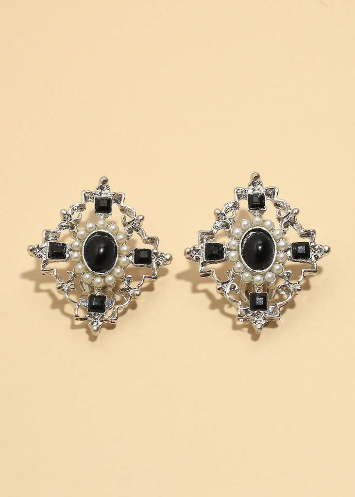 "Midnight Pearl" Clip Earrings