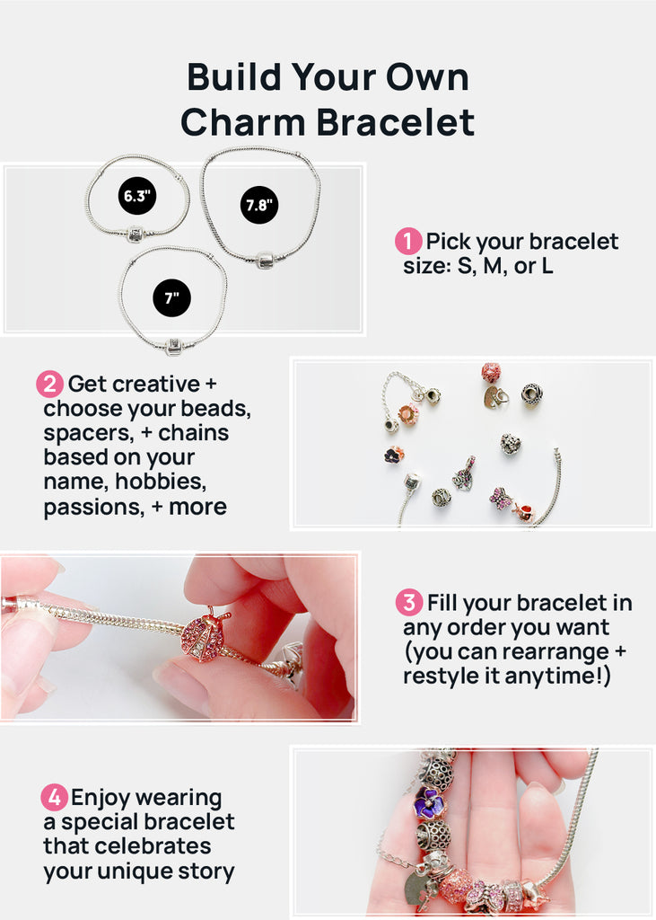 Choose from 115+ cute charm styles + 3 bracelet sizes