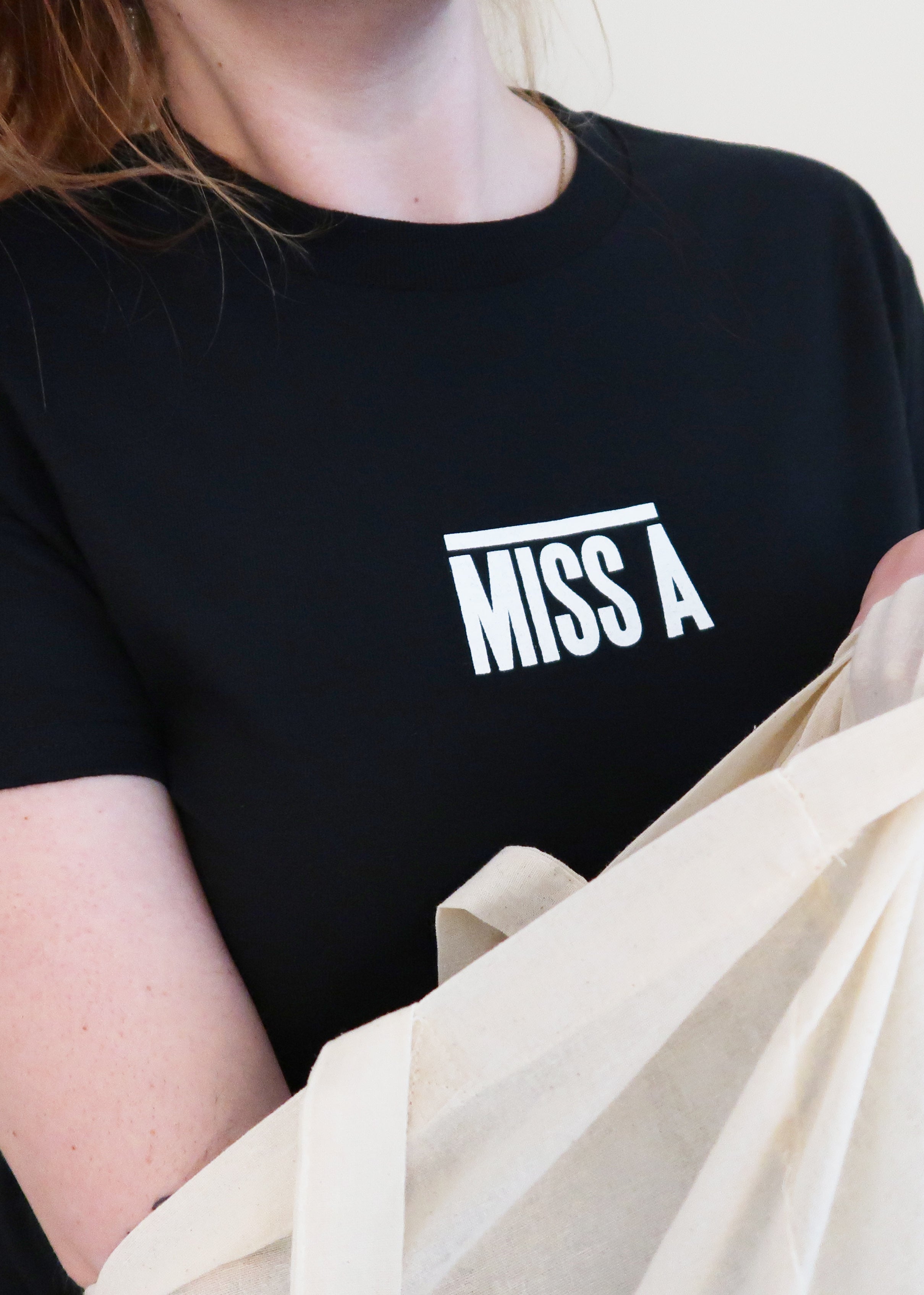 Keep it clean and bold with this classic black t-shirt featuring our MISS A logo front and center.
