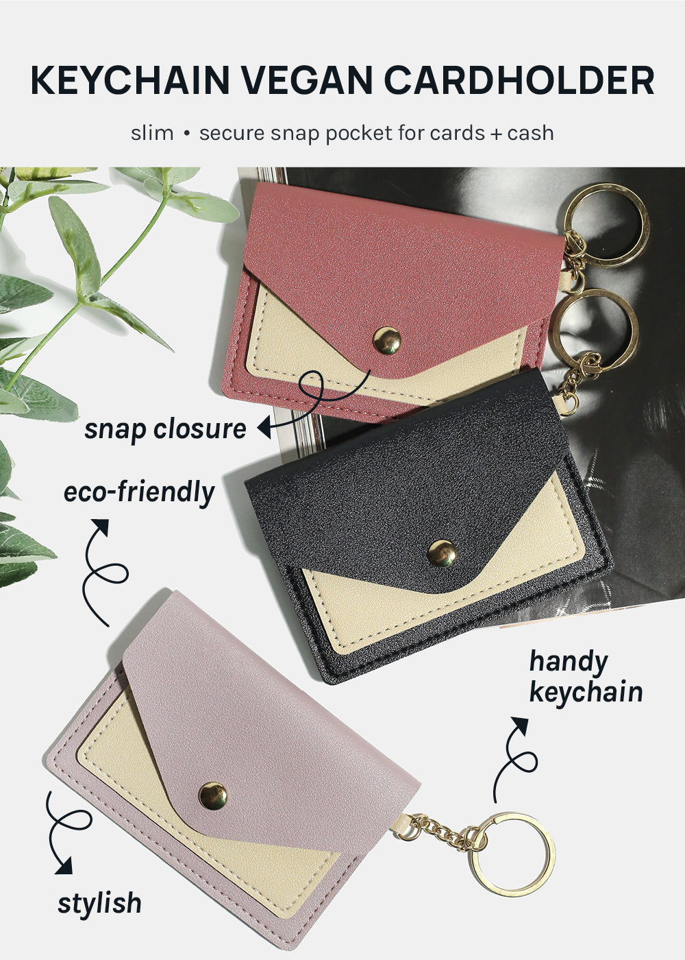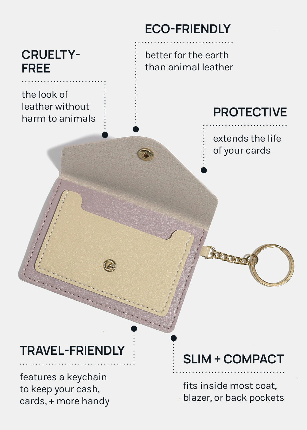 TRAVEL-FRIENDLY features a keychain to keep your cash, cards, + more handy