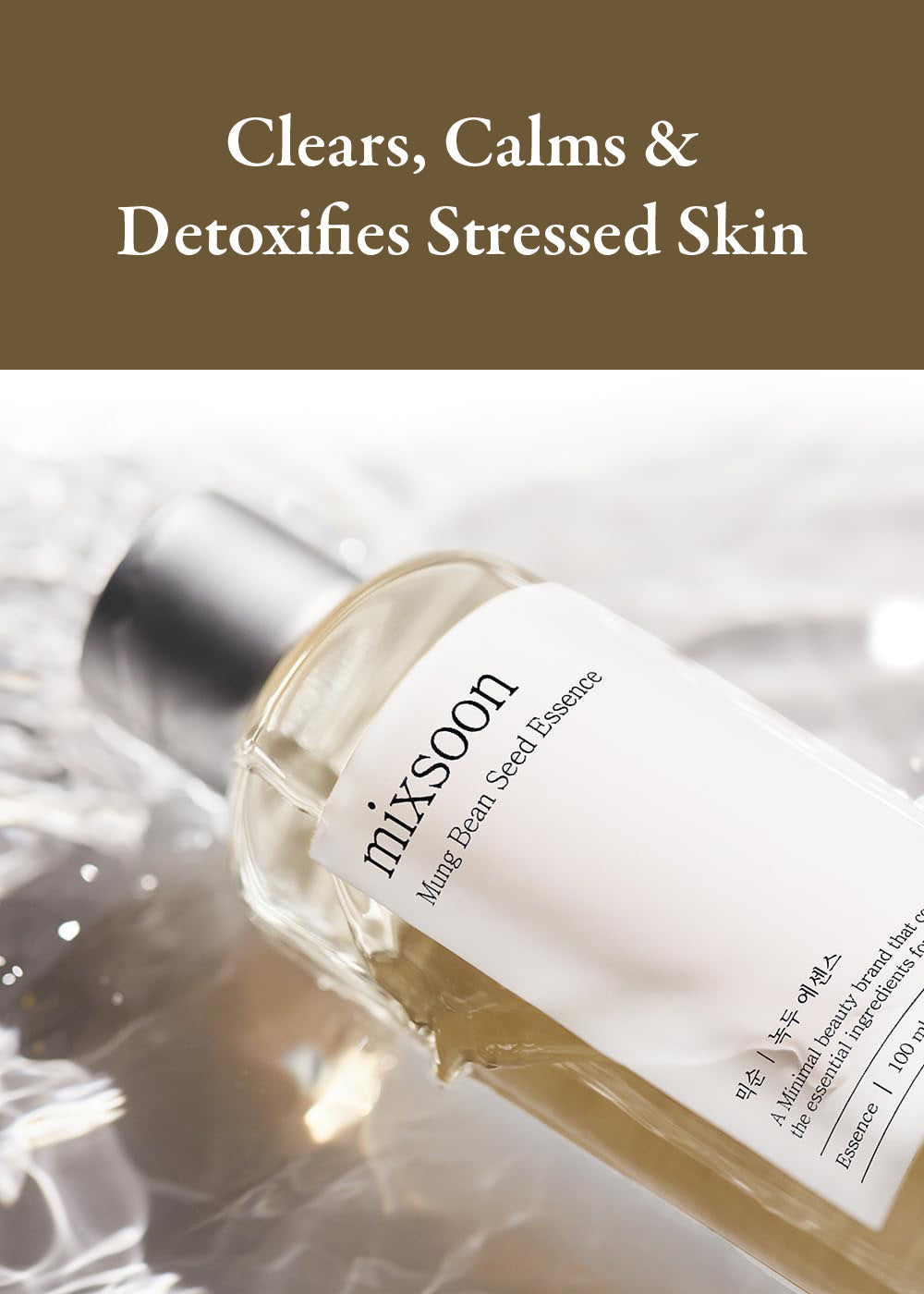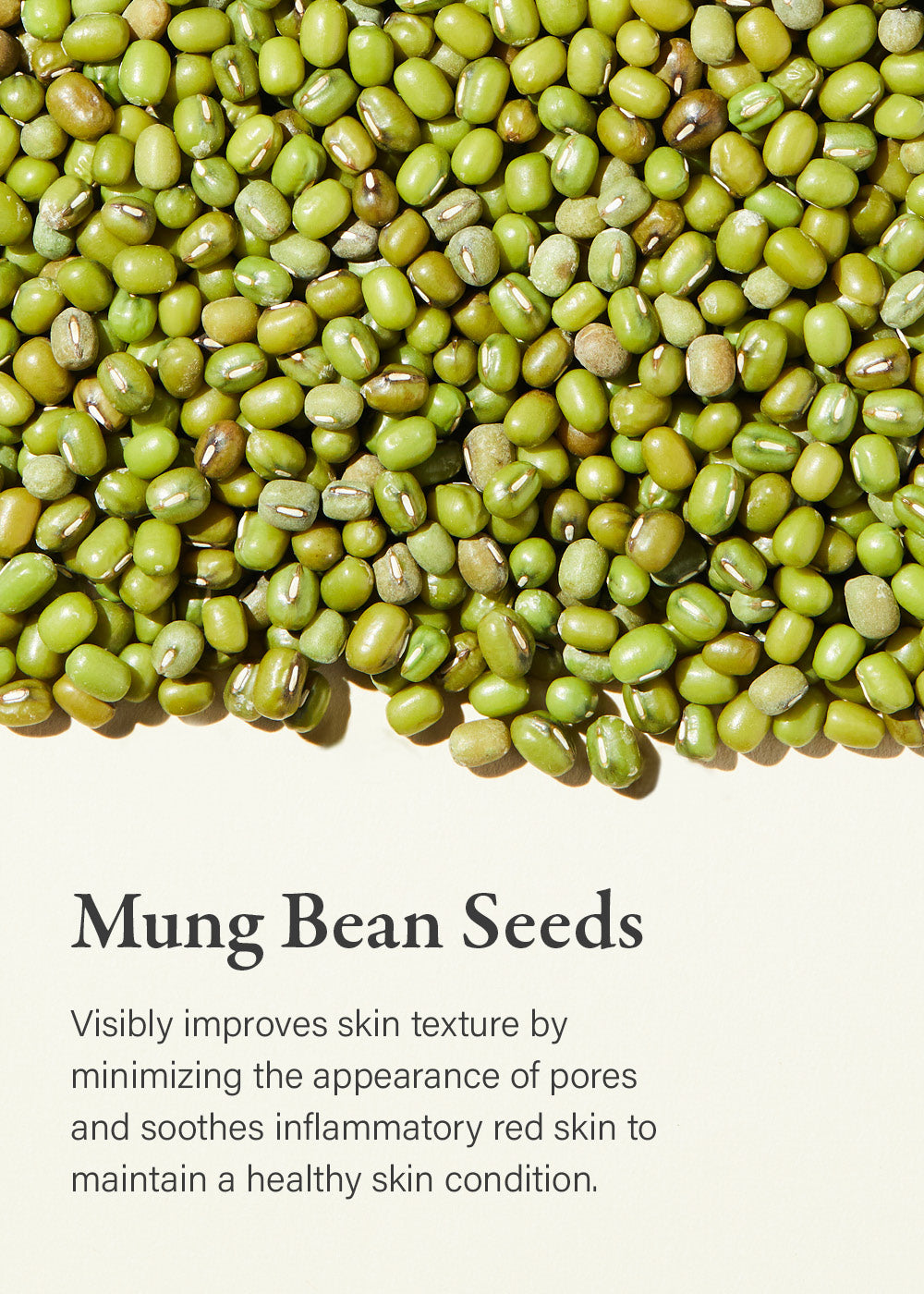 Made with 100% Mung Bean Seed Extract that helps clear and calm inflamed, textured skin and effectively purifies pores to the roots.