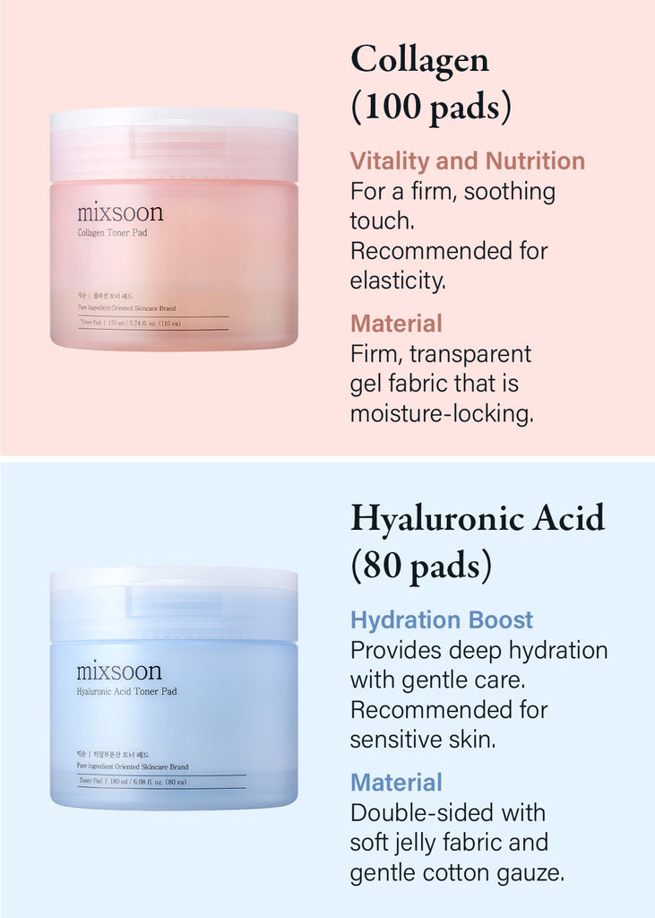 - Firming toner pads enriched with Collagen to help improve skin elasticity.