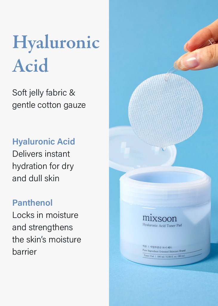 - This soft and moisturizing toner pad infused with Hyaluronic Acid delivers instant hydration for dry and dull skin.