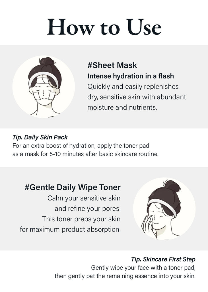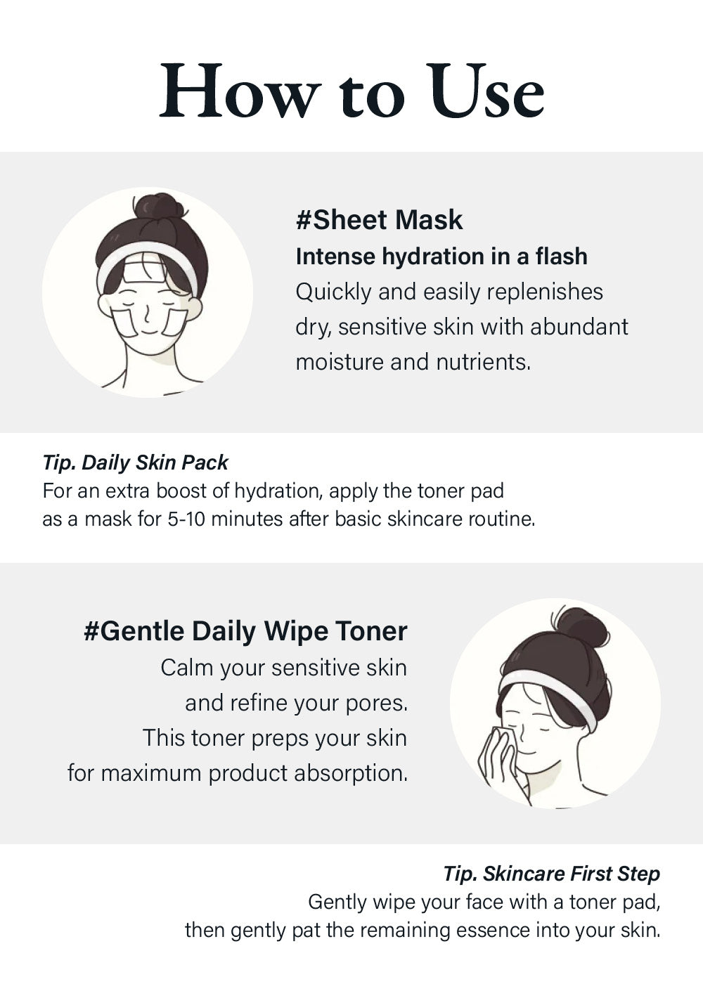 - When extra care is needed, place the pad on your face and let it sit for 10-15 minutes. This allows for deeper absorption of the pad's goodness.