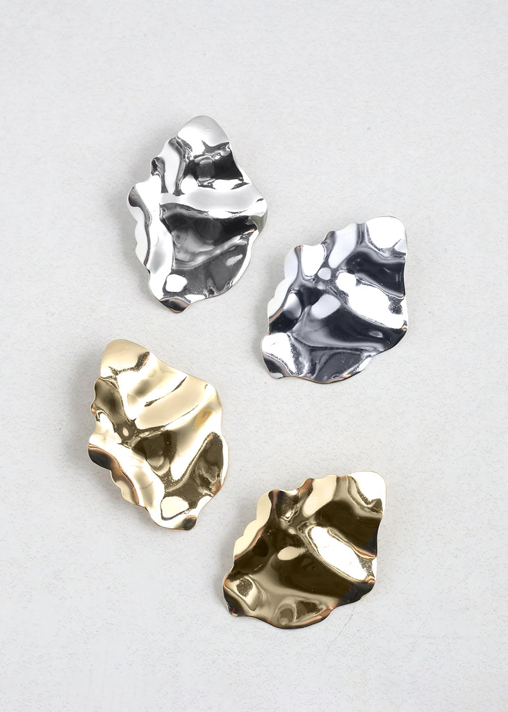 Make a bold statement with our Hammered Metal Statement Earrings, designed to bring a touch of modern art to your jewelry collection. This unique, abstract-shaped metal studs comes in both gold and silver —each featuring a fluid, sculptural design with a high-shine hammered finish.
