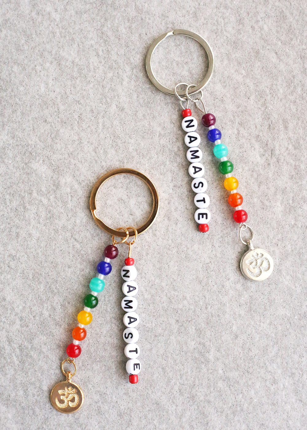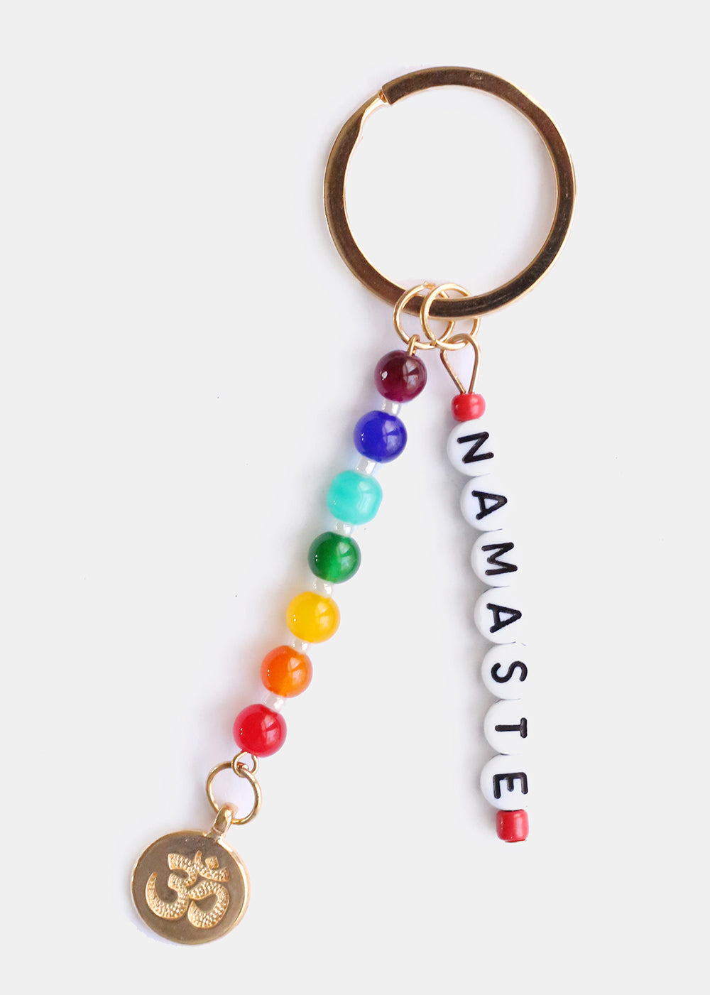 - Easy to use keychain ring with "NAMASTE" letter beads