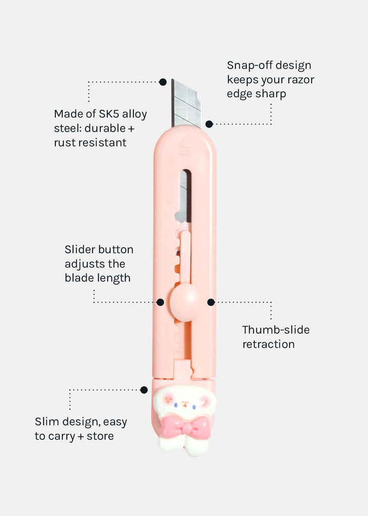 Cut tags, open packages, envelopes, snack bags, + more. Features thumb-slide retraction for quick use + snap-off blade design keeps your razor edge sharp.