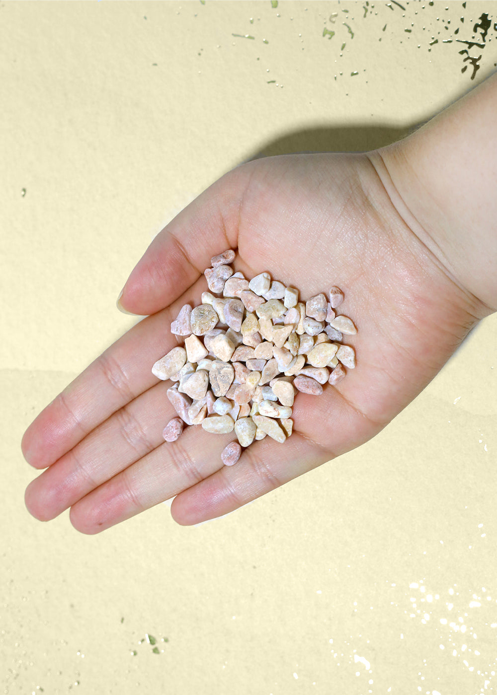 Mini decorative stones to fill the top of the planters after being arranged with faux succulents