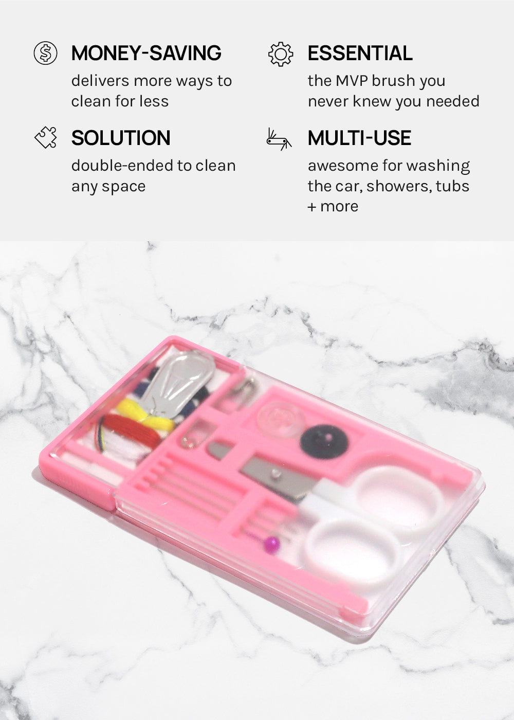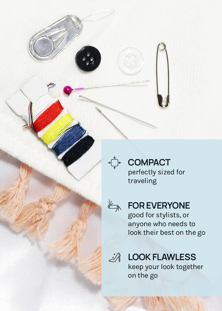 TSA Compliant, this mini sewing kit has everything you need for quick sewing repairs making it the perfect staple for a travel bag or purse.