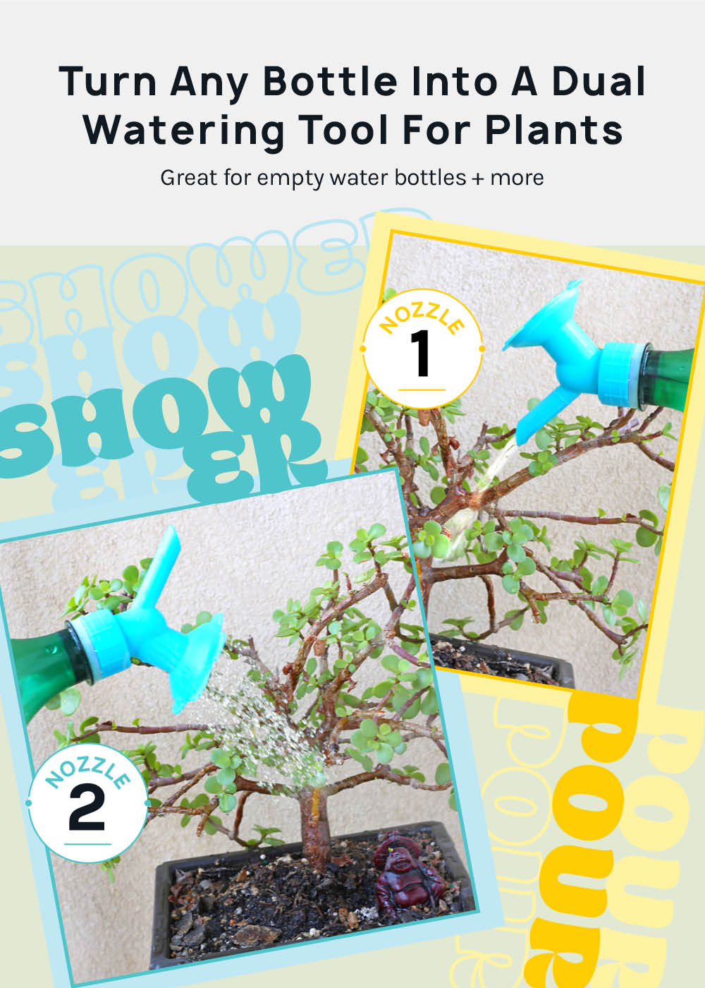 - Transform any water bottle to water your plants in your house! This nozzle has 2 ends: spray and spout.