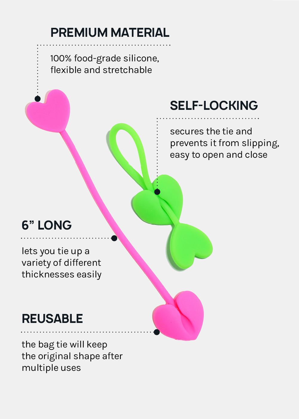- Cute Silicone Heart Shaped Bag Ties